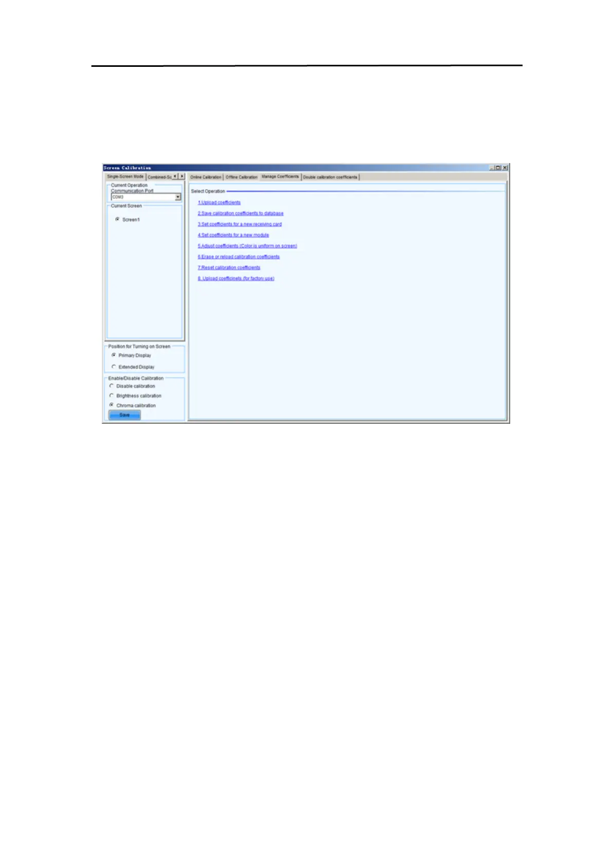 This option is to set the calibration coefficients for a newly placed receiving card in the