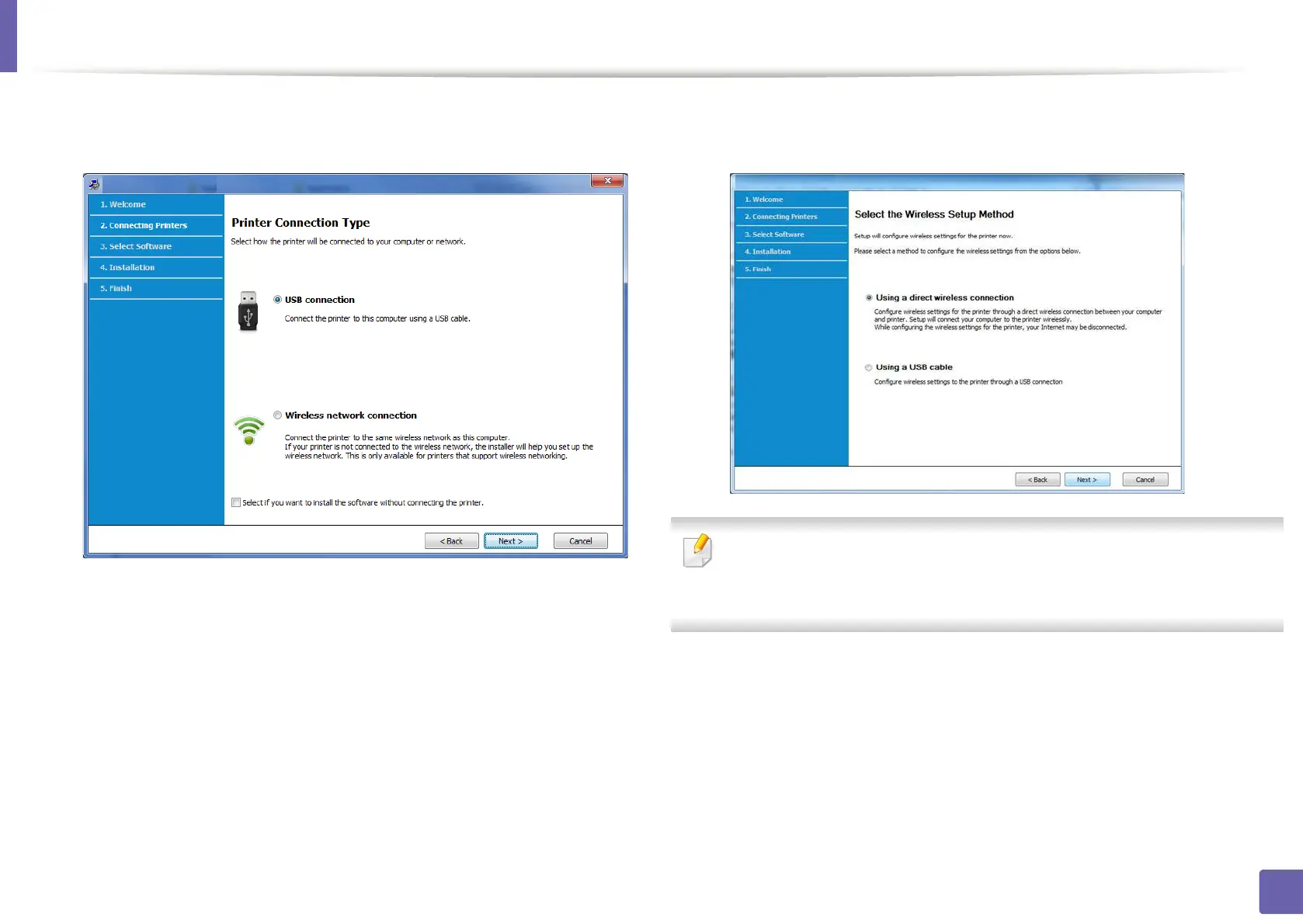 Select Wireless network connection on the Printer Connection Type