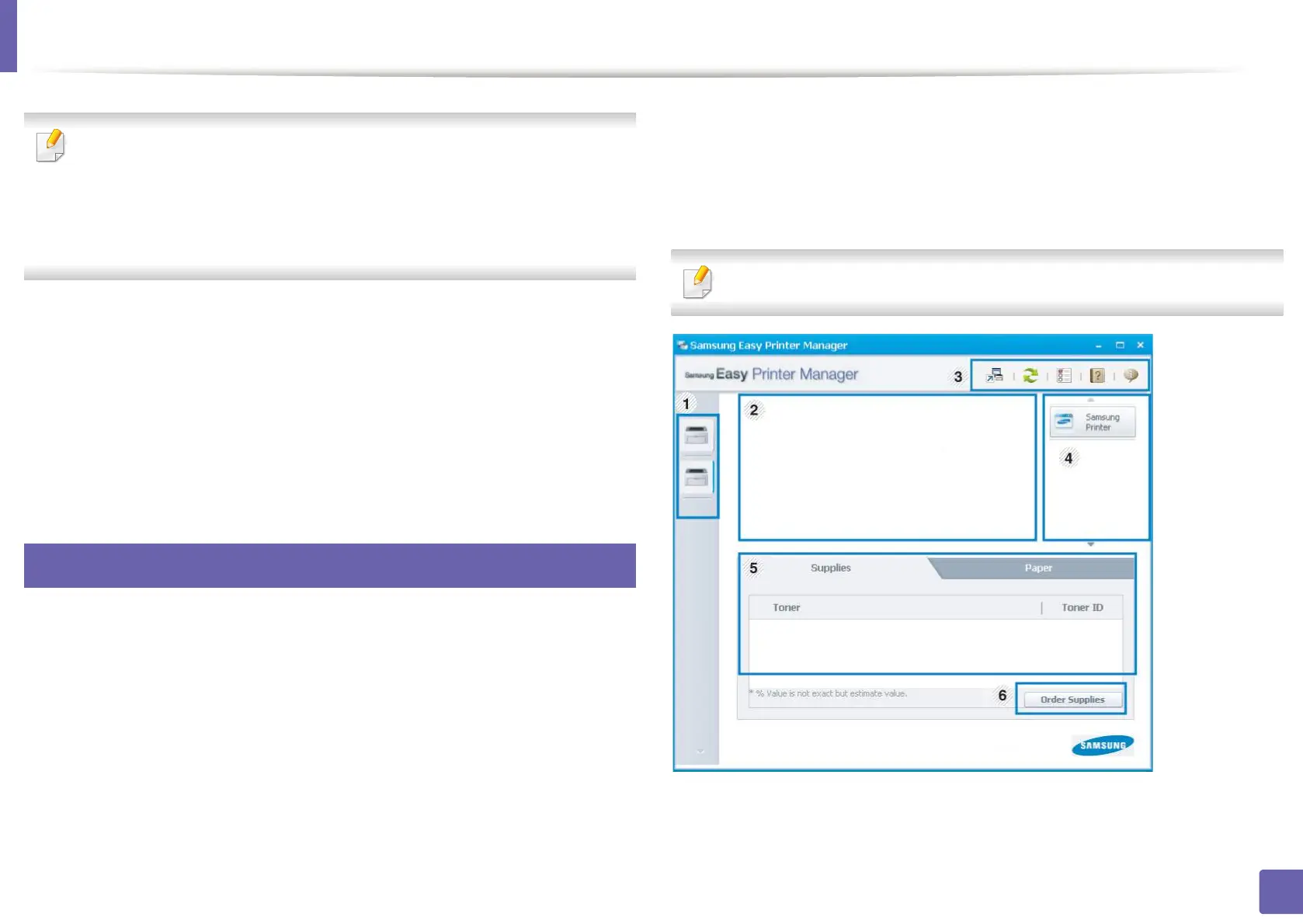 The Samsung Easy Printer Manager interface is comprised of various basic