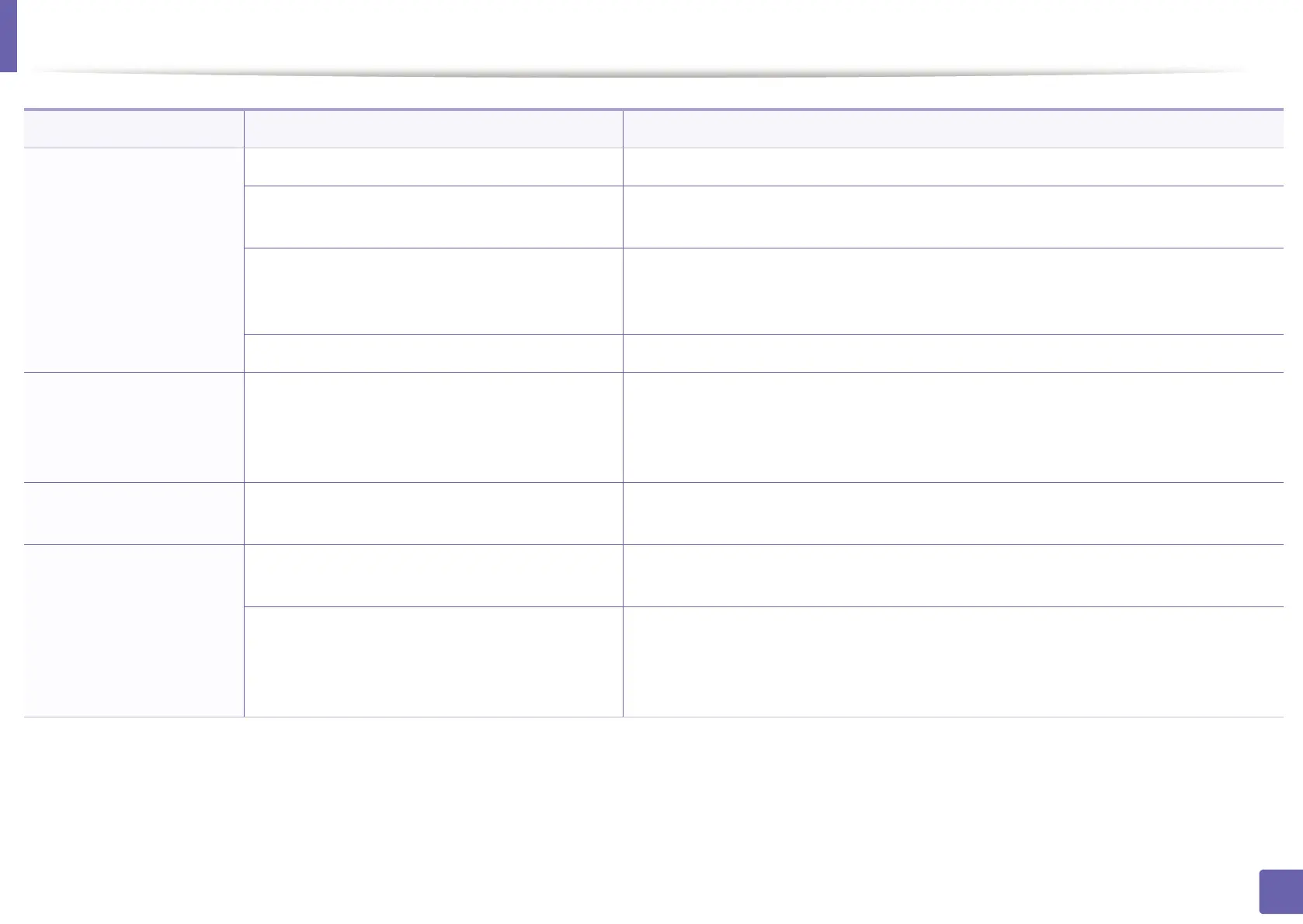 Condition Possible cause Suggested solutions