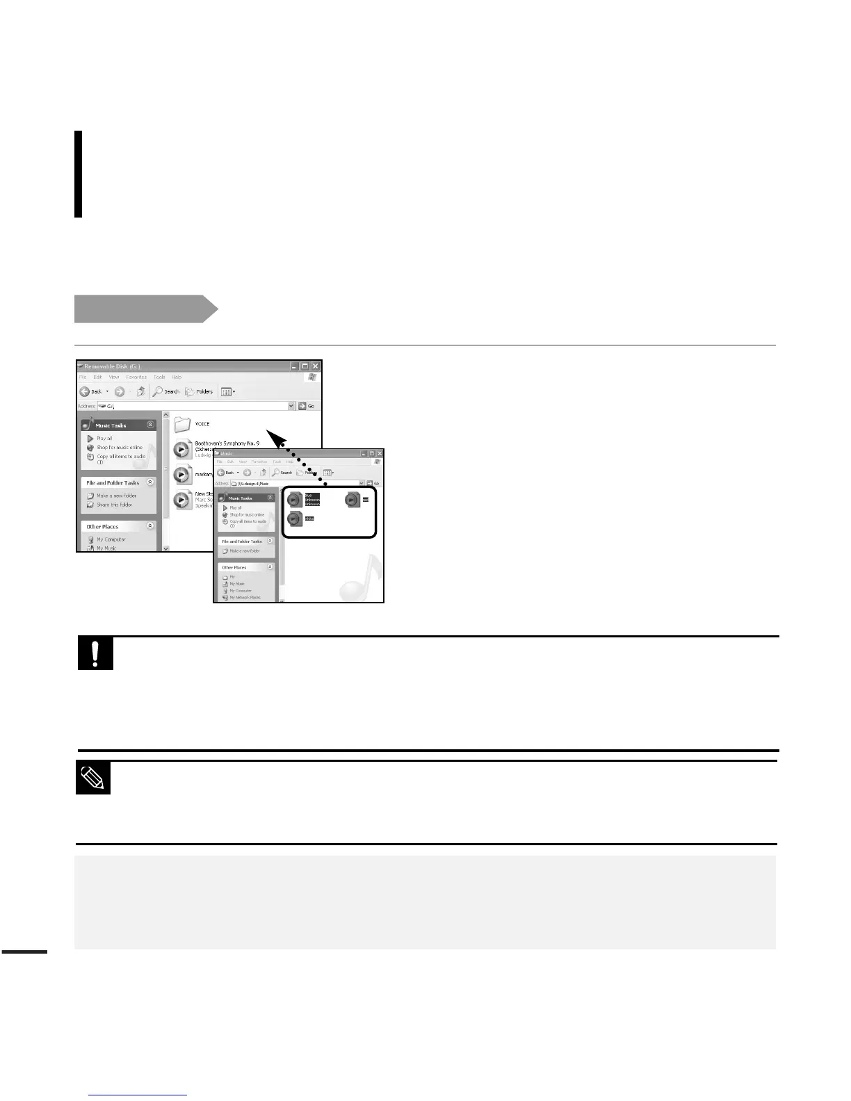 The order of music files displayed in Windows Explorer may differ from the play order on your device.
