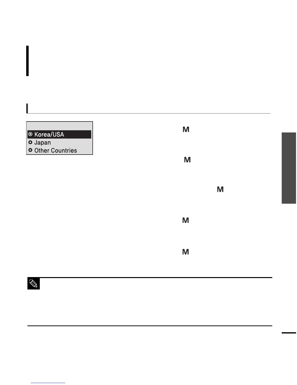 - Korea/USA: Search for FM frequencies in 100 kHz players between 87.5 MHz~108.0 MHz.