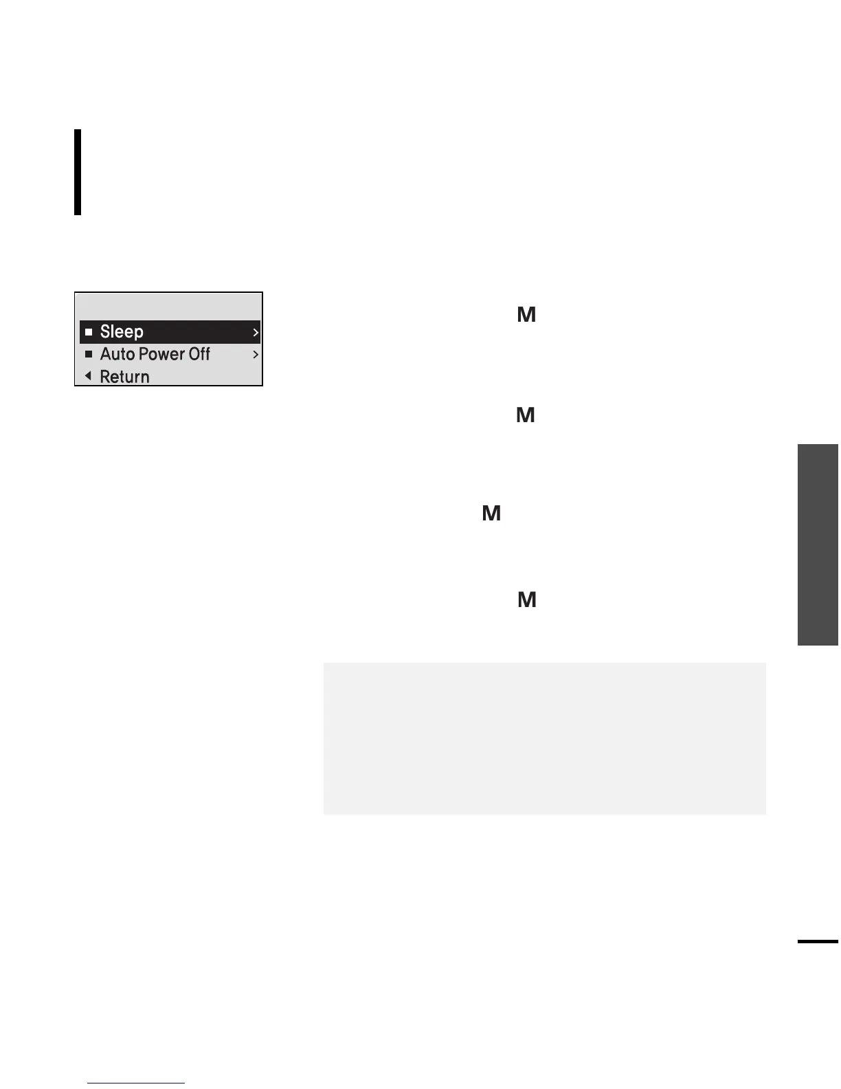 You can set functions related to the Sleep Timer and Auto Power Off.