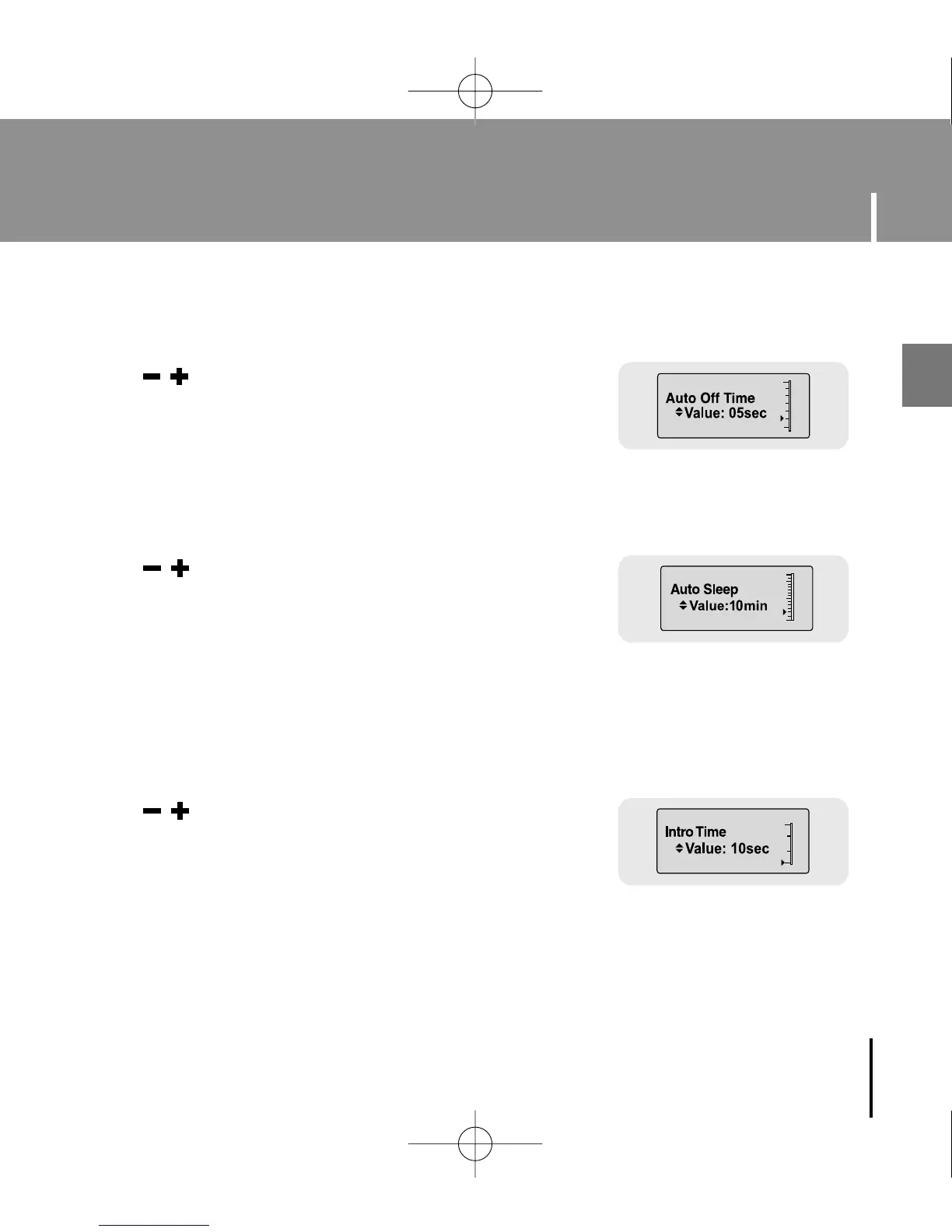 ● Use , to set the Power-Off time from 0 to 3 minutes.