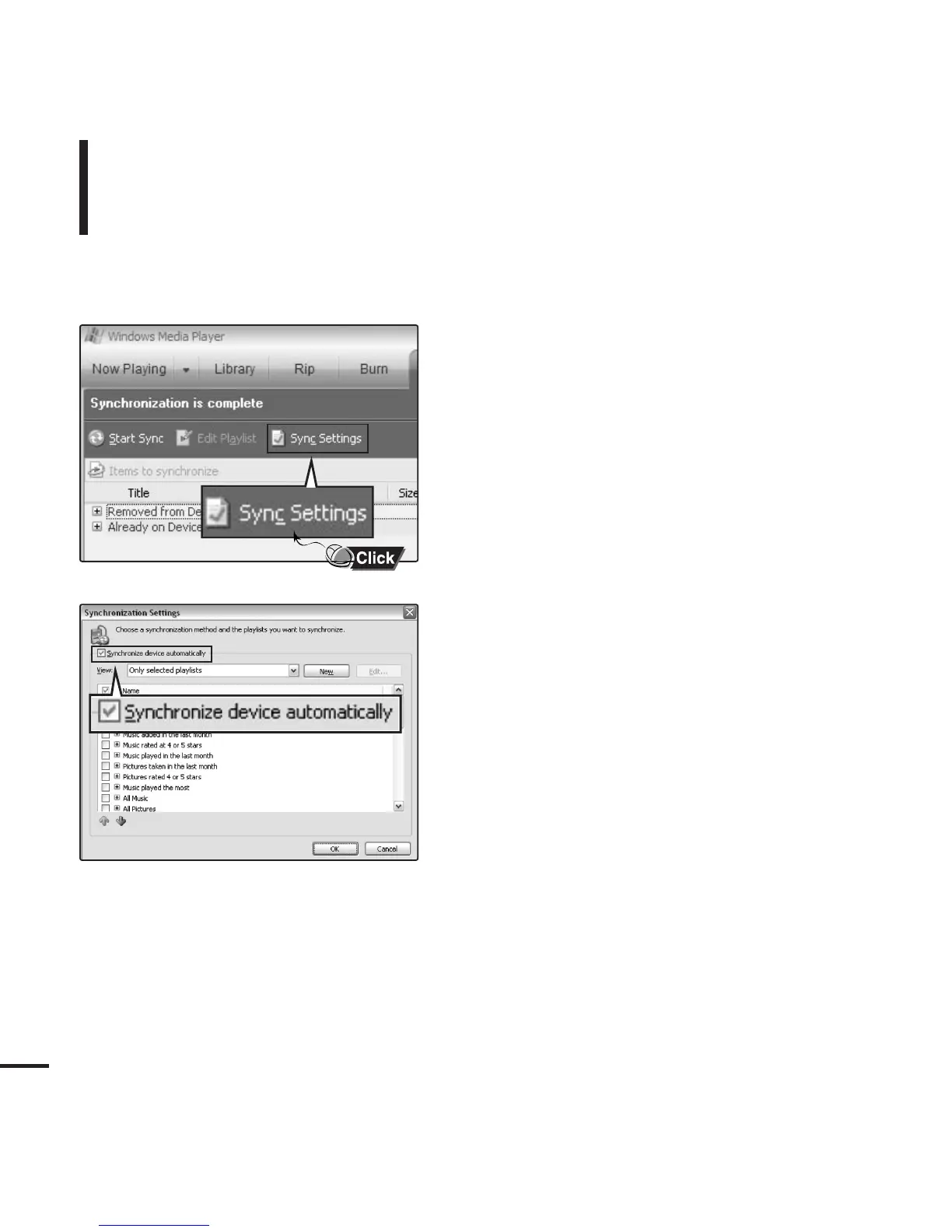 on “Sync Settings” in the WMP10 menu