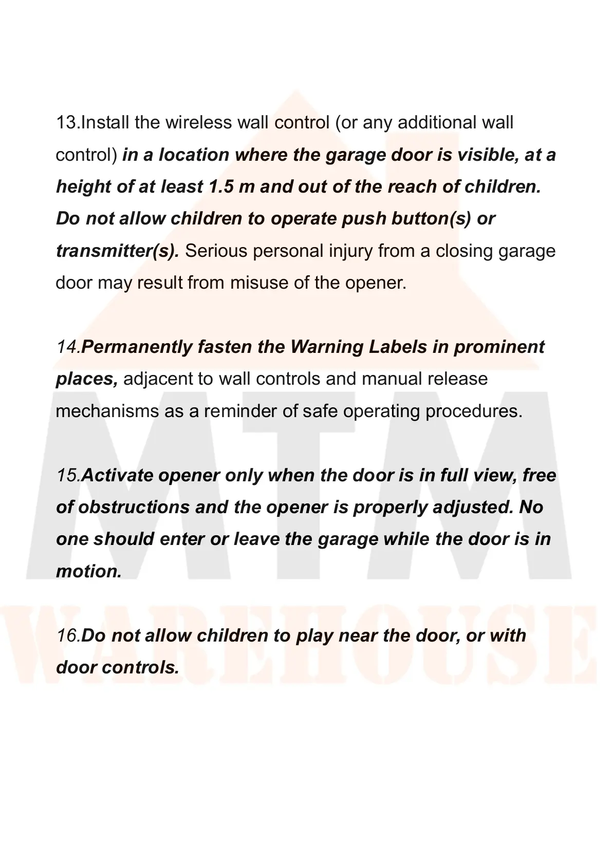 15.Activate opener only when the door is in full view, free