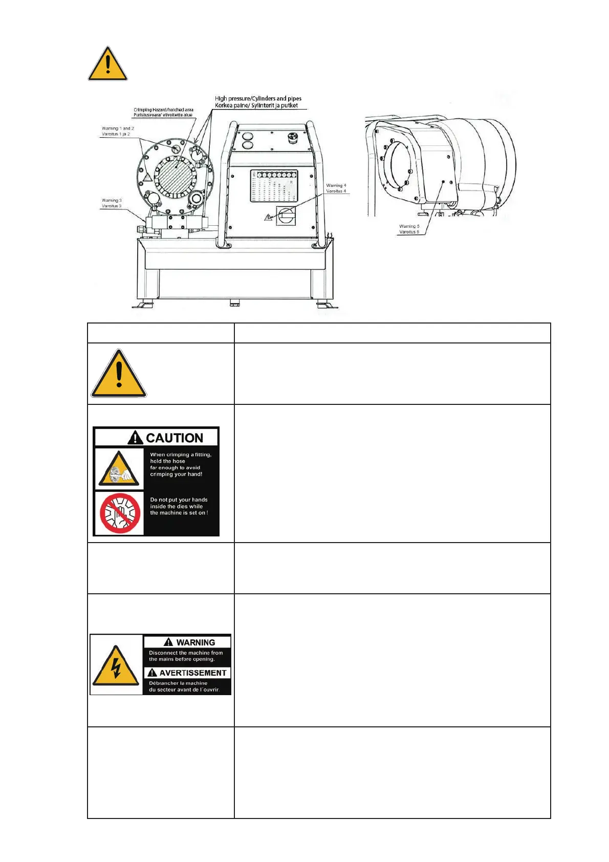 Do not put your hands inside the dies while the machine is set on!
