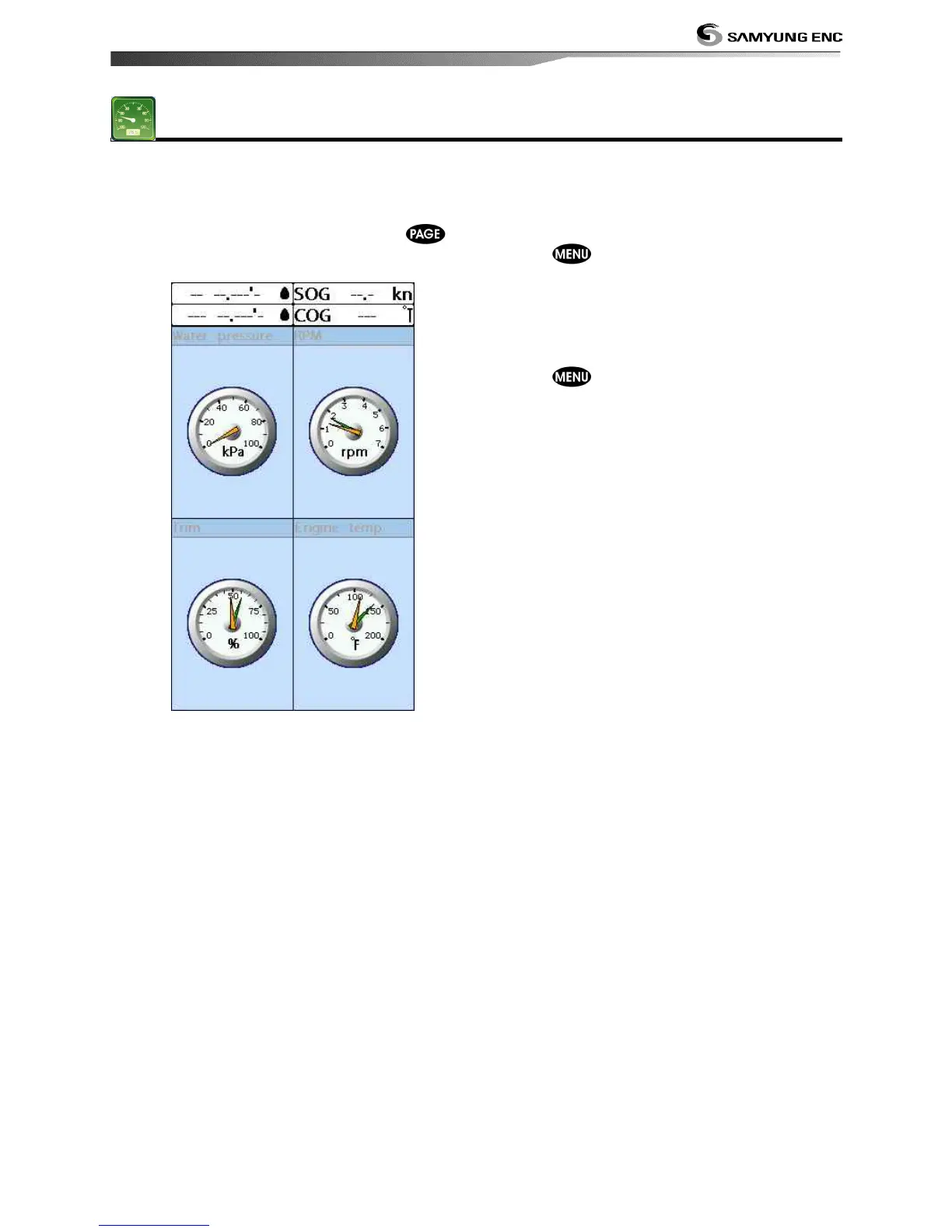 as water, engine, fuel related information,