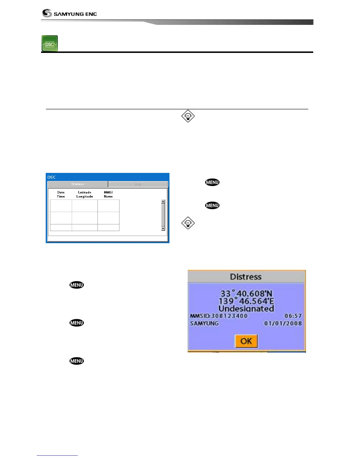 DSC window shows the distress and poll information received from other vessel through DSC