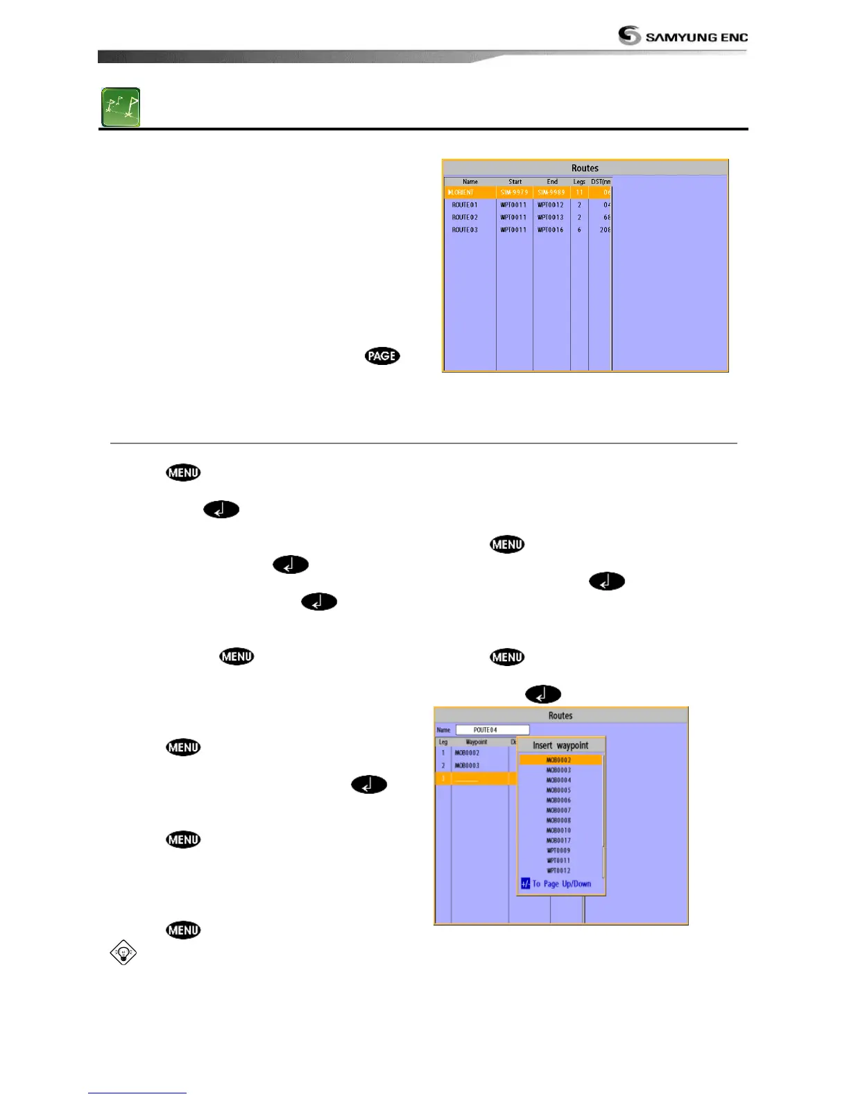 Samyung F700 - Routes; Managing a Route from the Chart Window