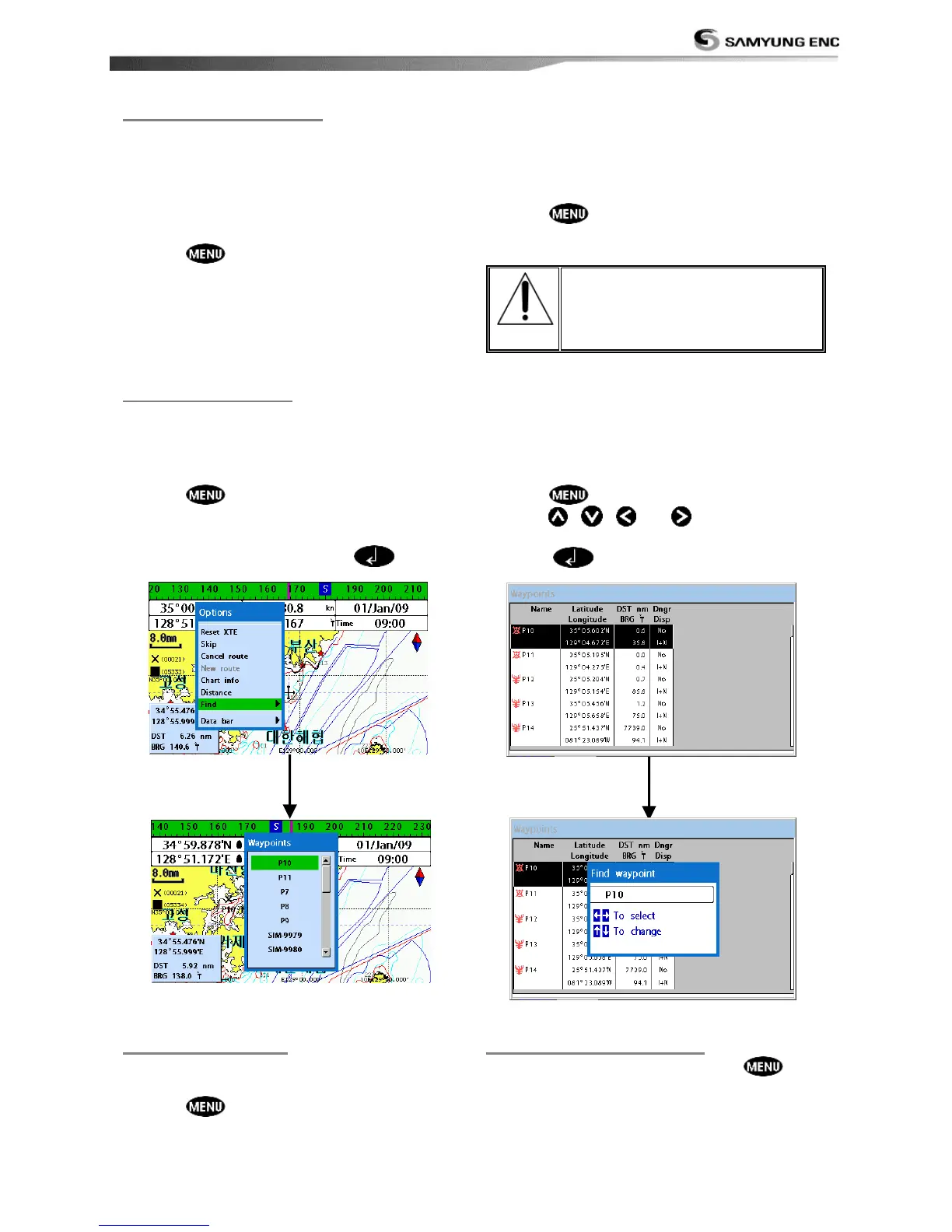 Samyung NF430 - Deleting a Waypoint; Find a Waypoint; Sort Waypoints; Deleting All Waypoints