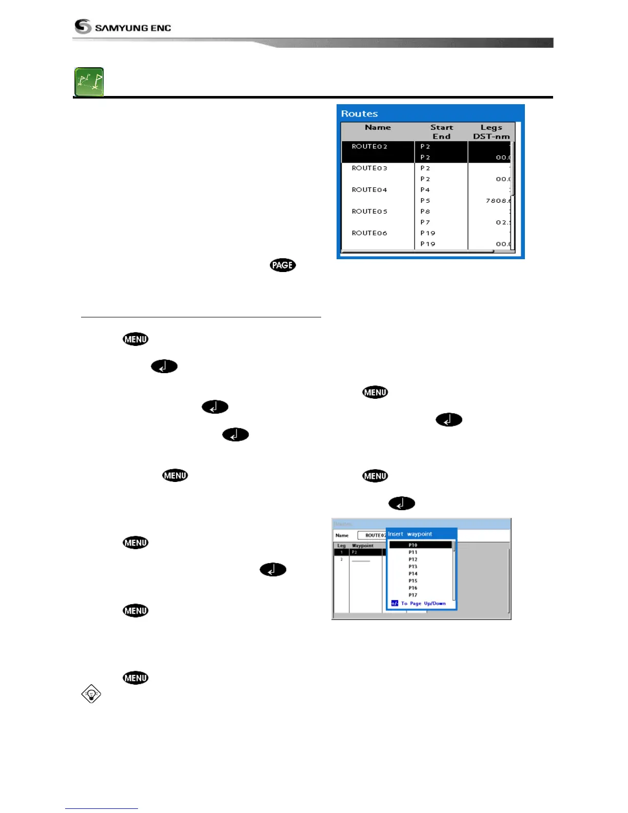 2 Enter the new route name using cursor key