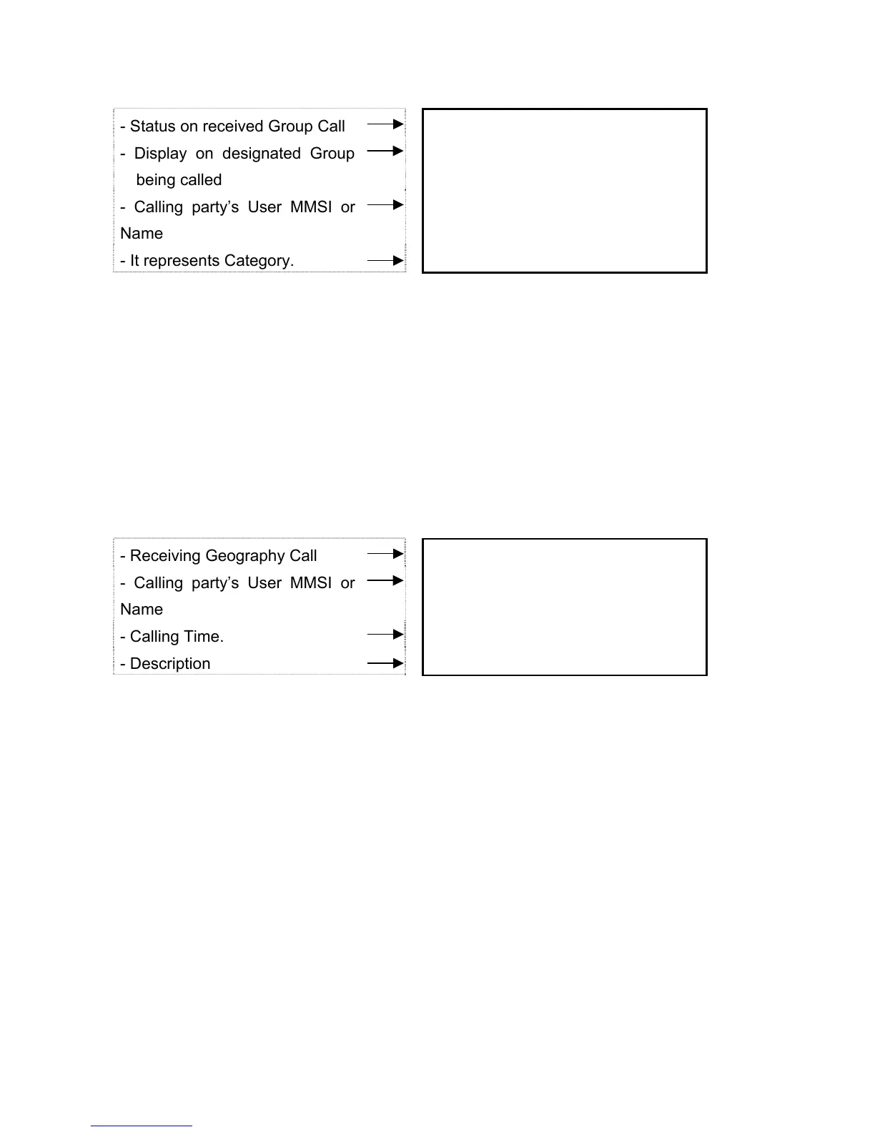 communication by pressing PTT on designated channel. The received calling date will be