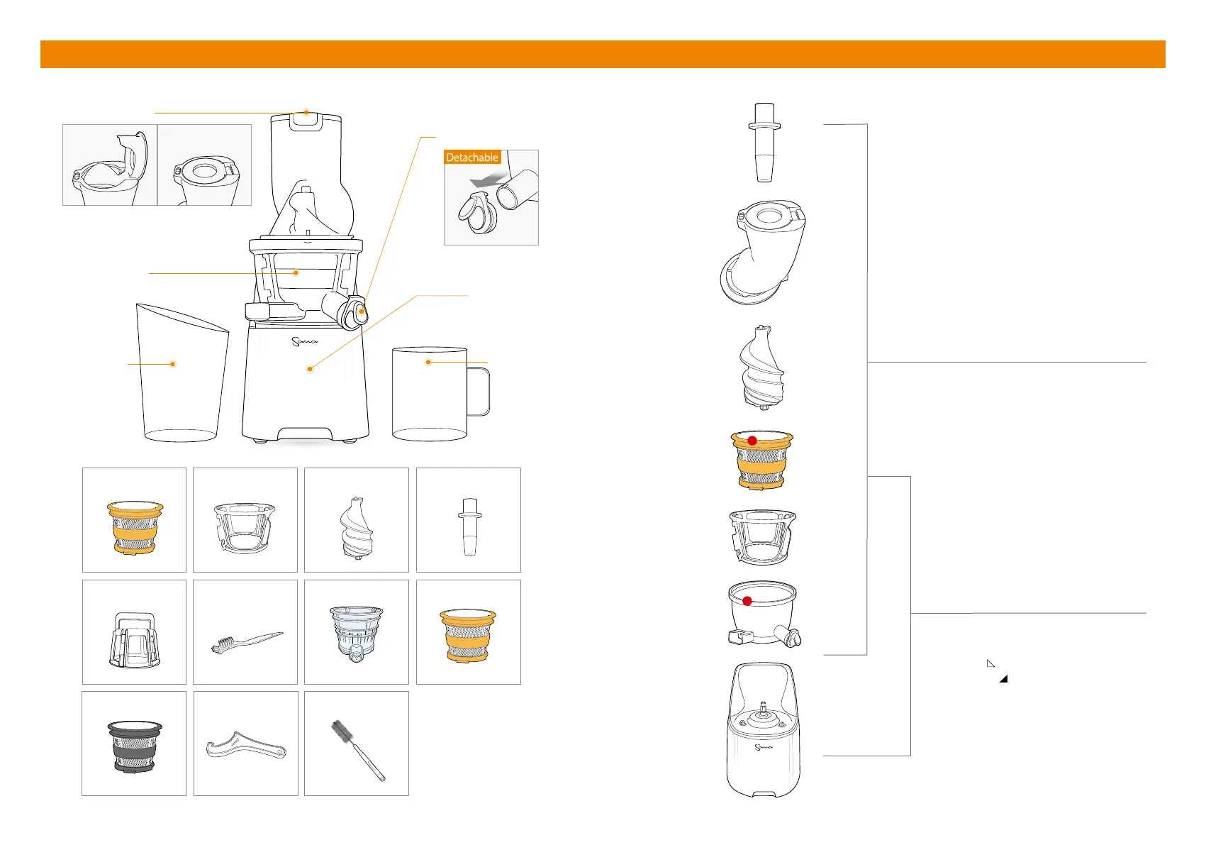 9. Auger8. Wiping Blades7. Juicing Strainer