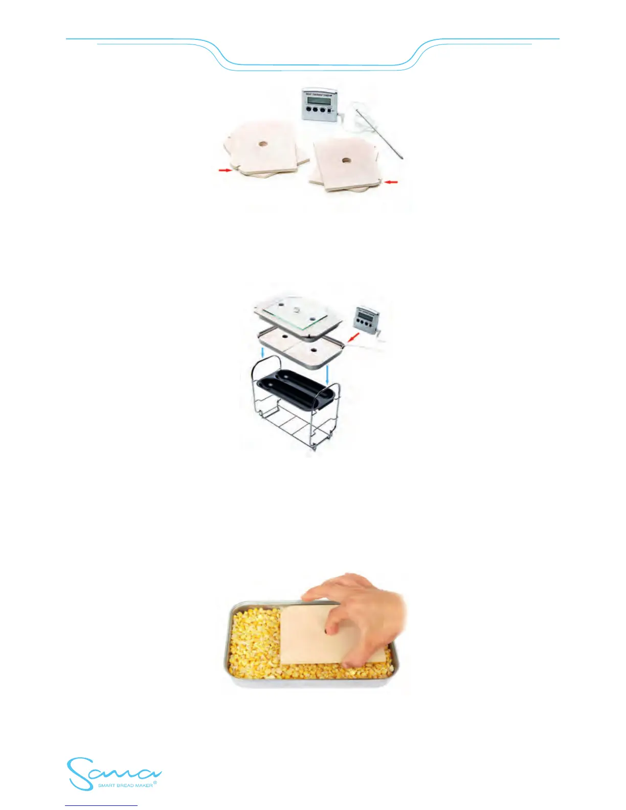 When using 2 basins, put the thermometer cable under the lower ceramic lid - see the picture.