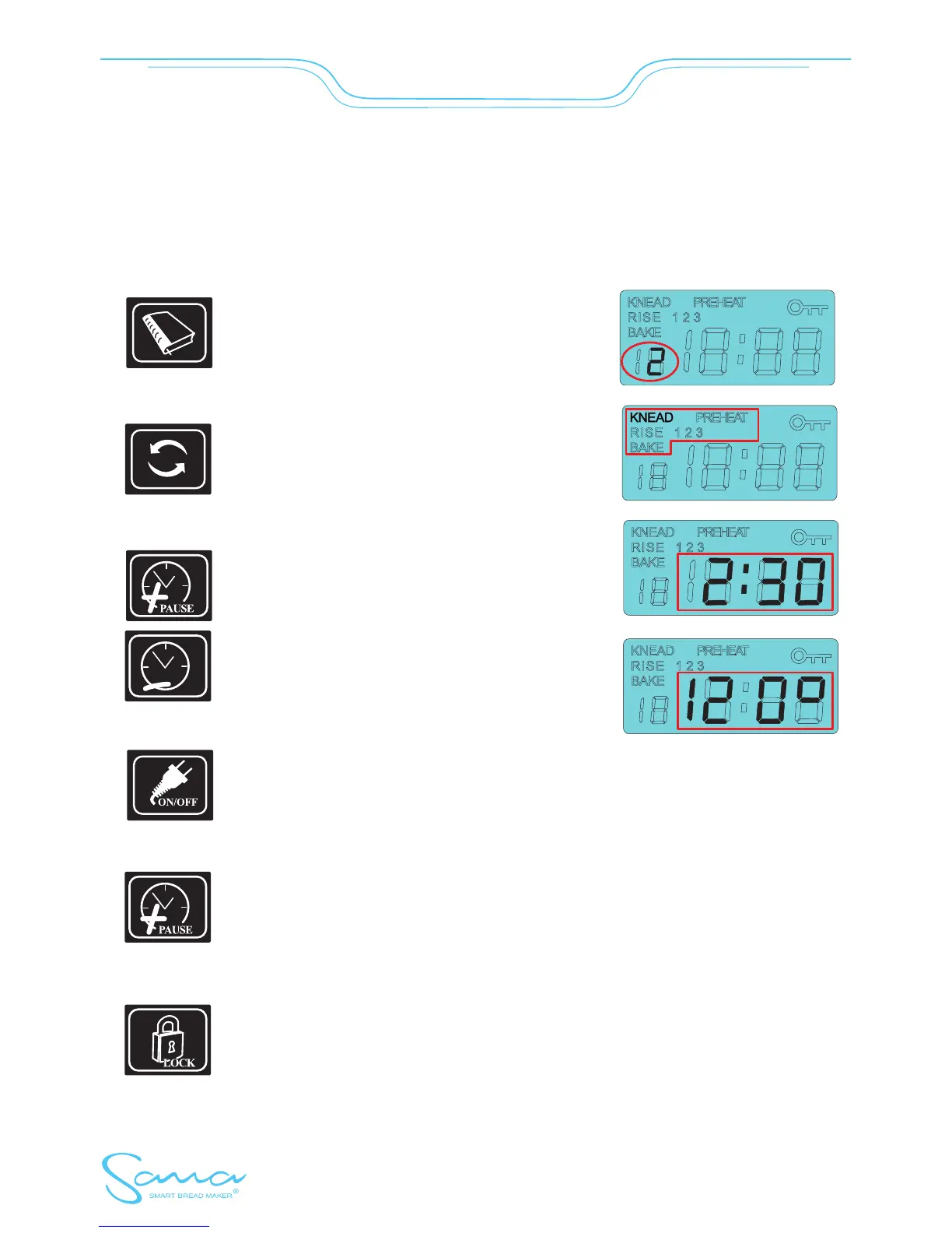 „PAUSE” button for 2 seconds. Press and hold this button to start the bread maker