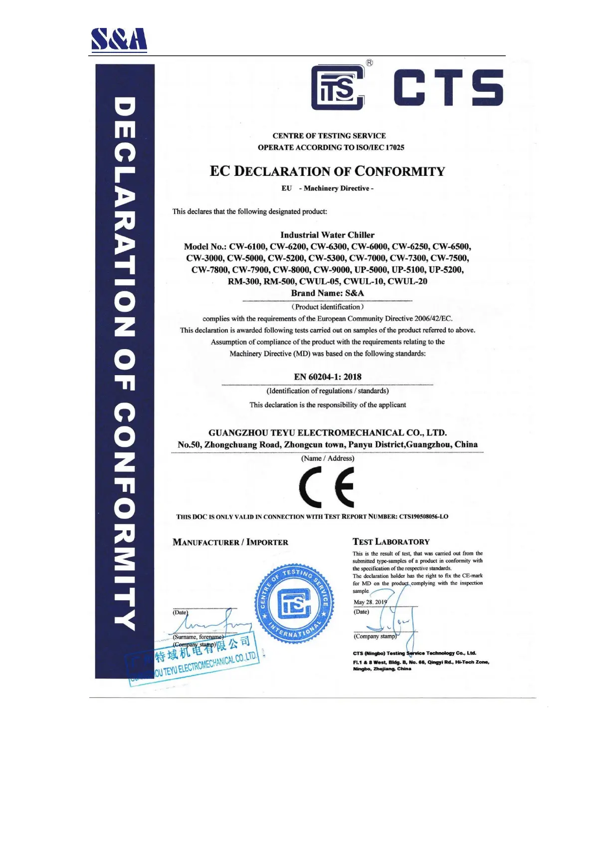 Other manuals for S&A CW-6260