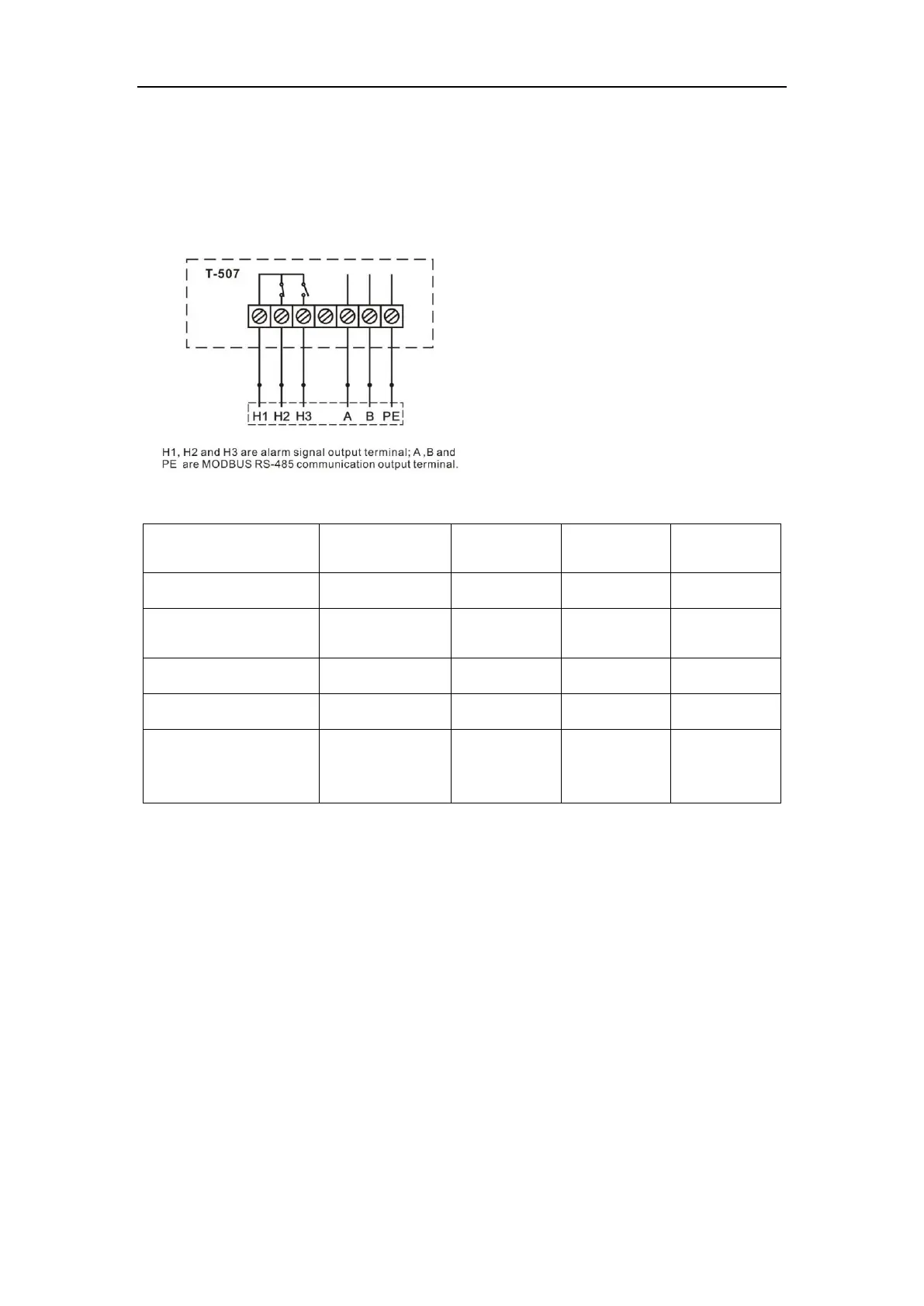 1. Alarm and MODBUS RS-485 communication output wiring diagram.