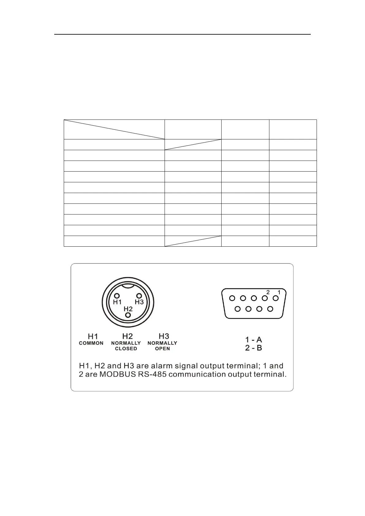 2. Alarm and MODBUS RS-485 communication output terminal diagram.