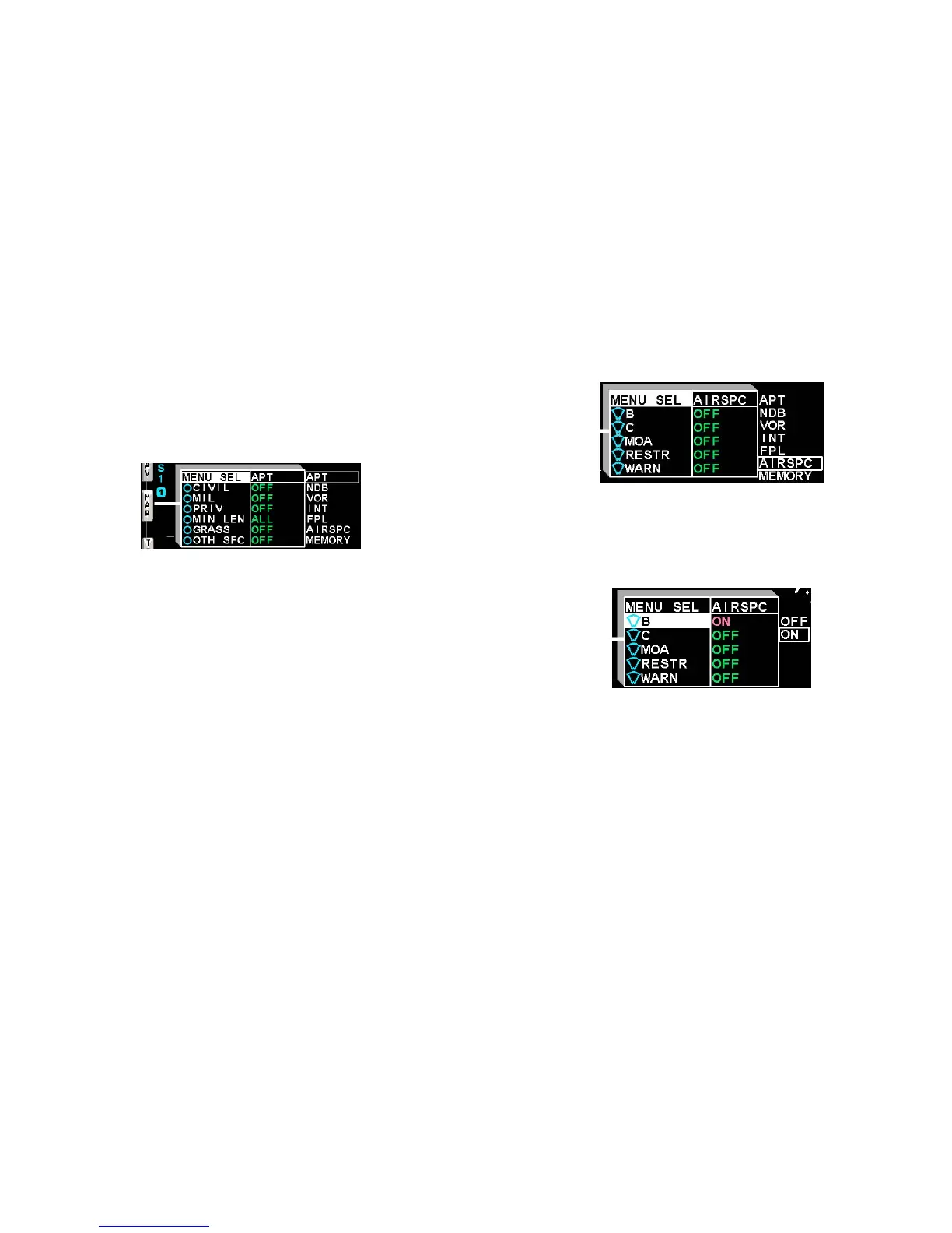• Rotate the right knob until airspace is highlighted as shown