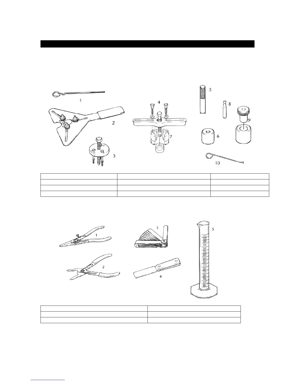 2. Internal Snap Ring Pliers 5. Graduated Cylinder