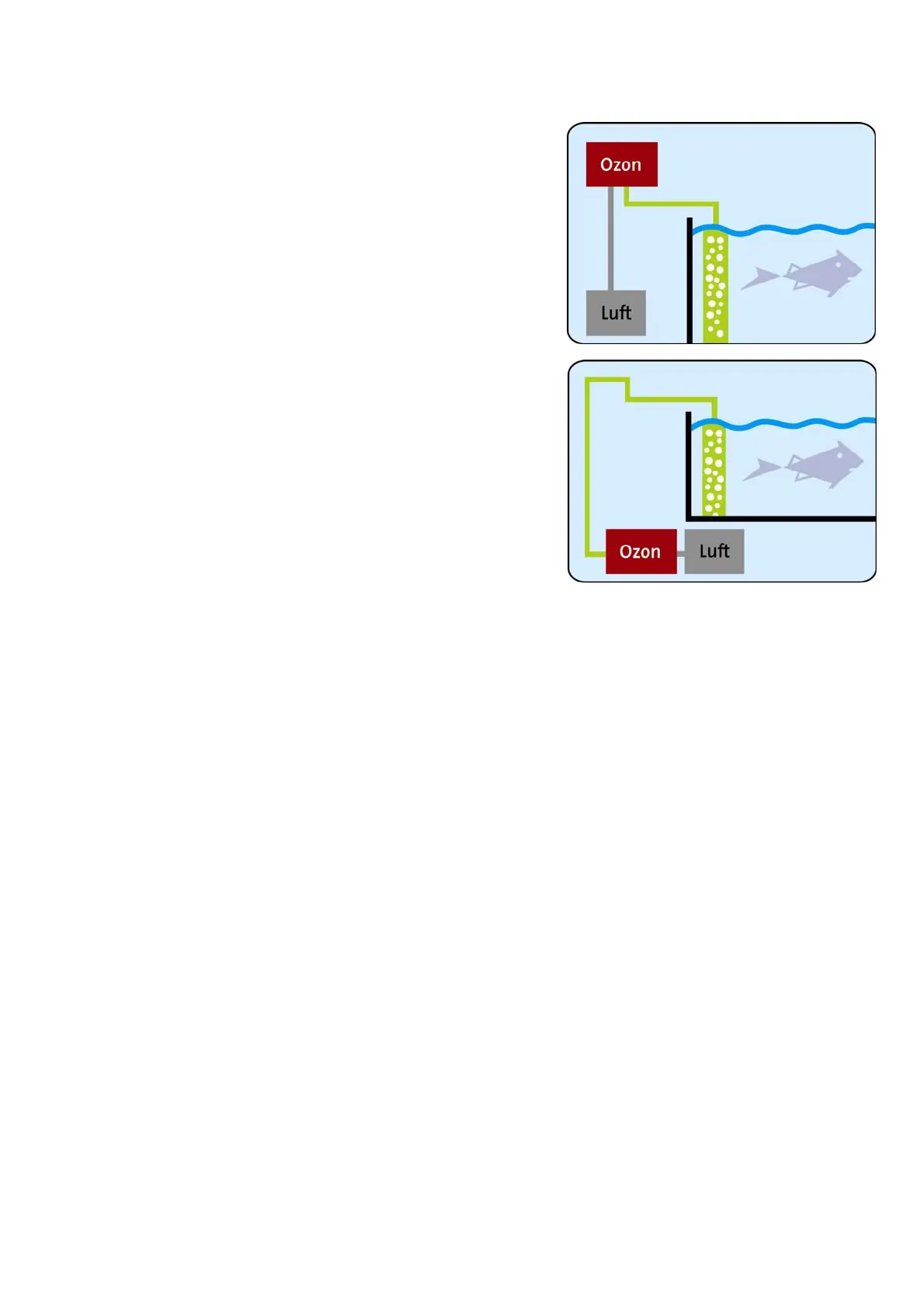 connection (6) on the ozone element (7) is connected to the air stones via the skimmer. Using the