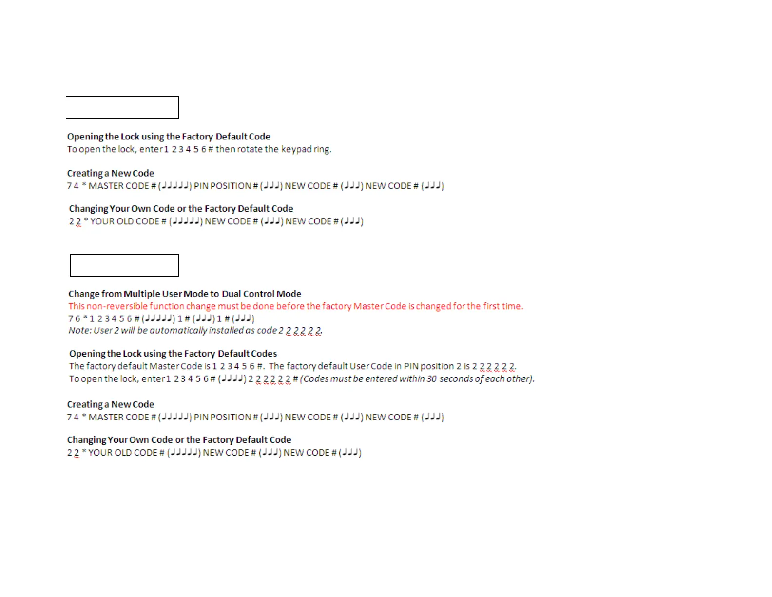 S&G Titan - Multiple User Mode; Opening the Lock using the Factory Default Code; Creating a New Code; Changing Your Own Code or the Factory Default Code