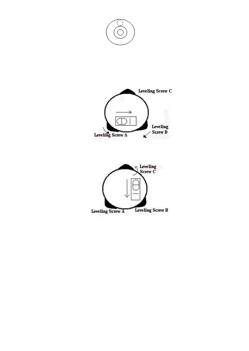 leveling screw or leveling C to center the bubble once more.