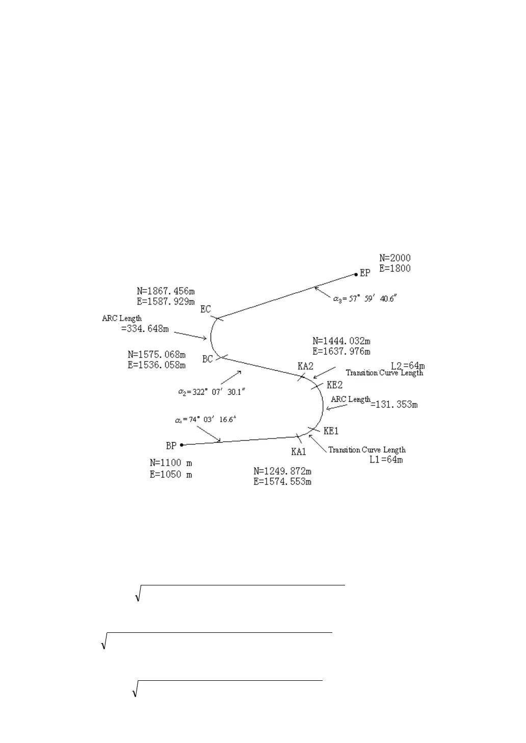 1400 - 221.615 * sin322°07′30.1″ =1536.058 m