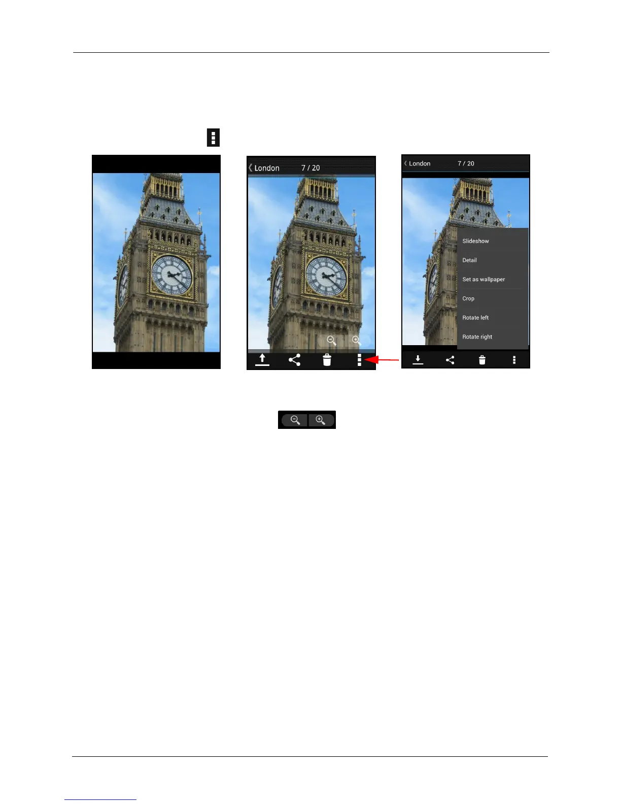 • Tap the appropriate zoom icon   to make a photo larger or smaller.