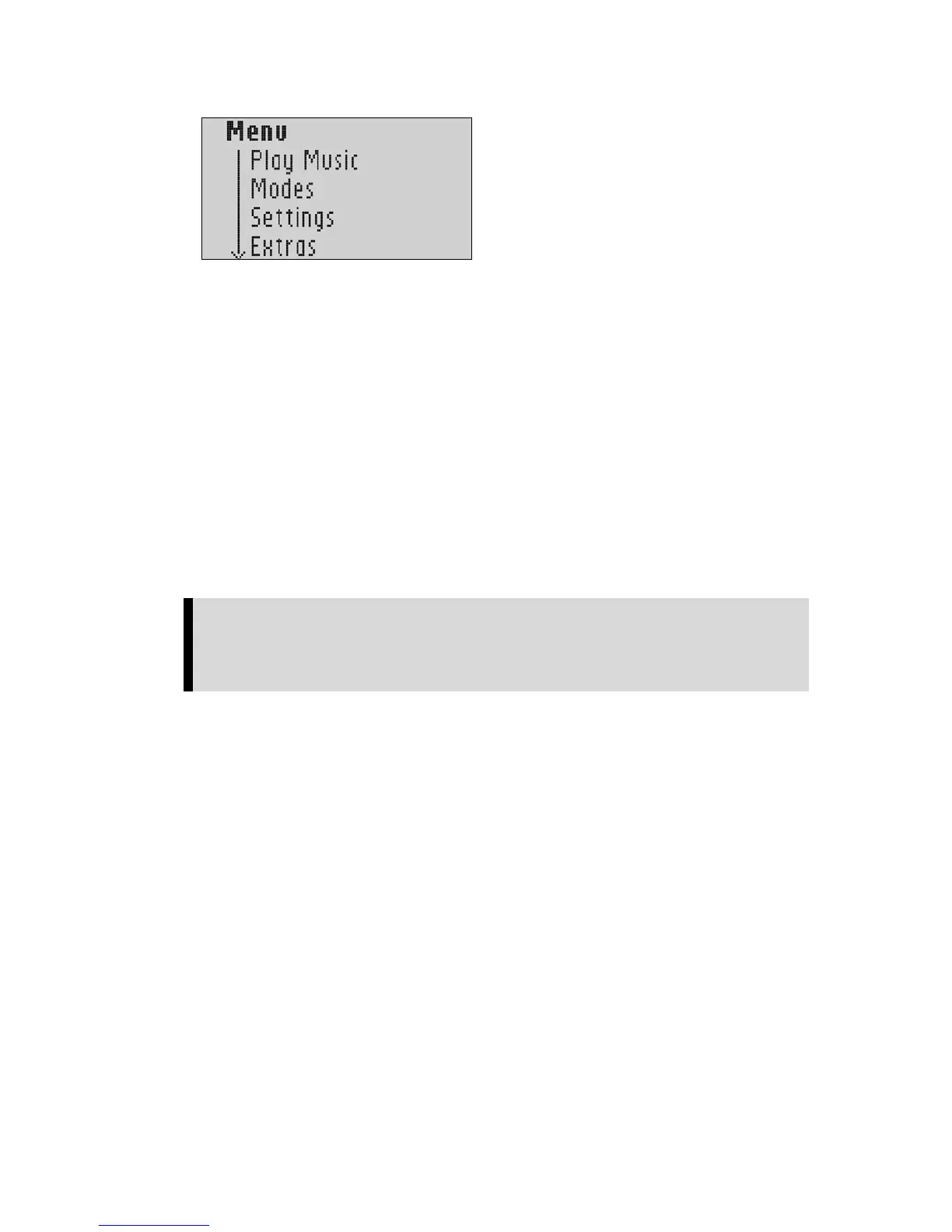 To scroll up or down settings for a sub menu press the Play/Pause/Up Button or the