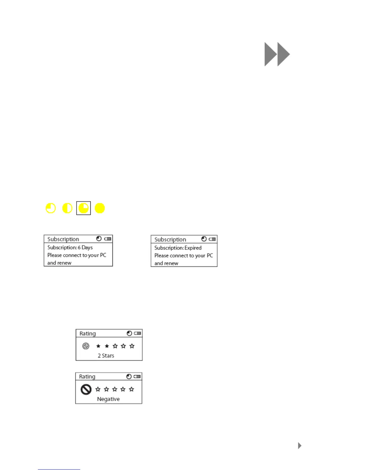 3.  Press |<< or >>| to change the rating (Negative to 5 Stars)