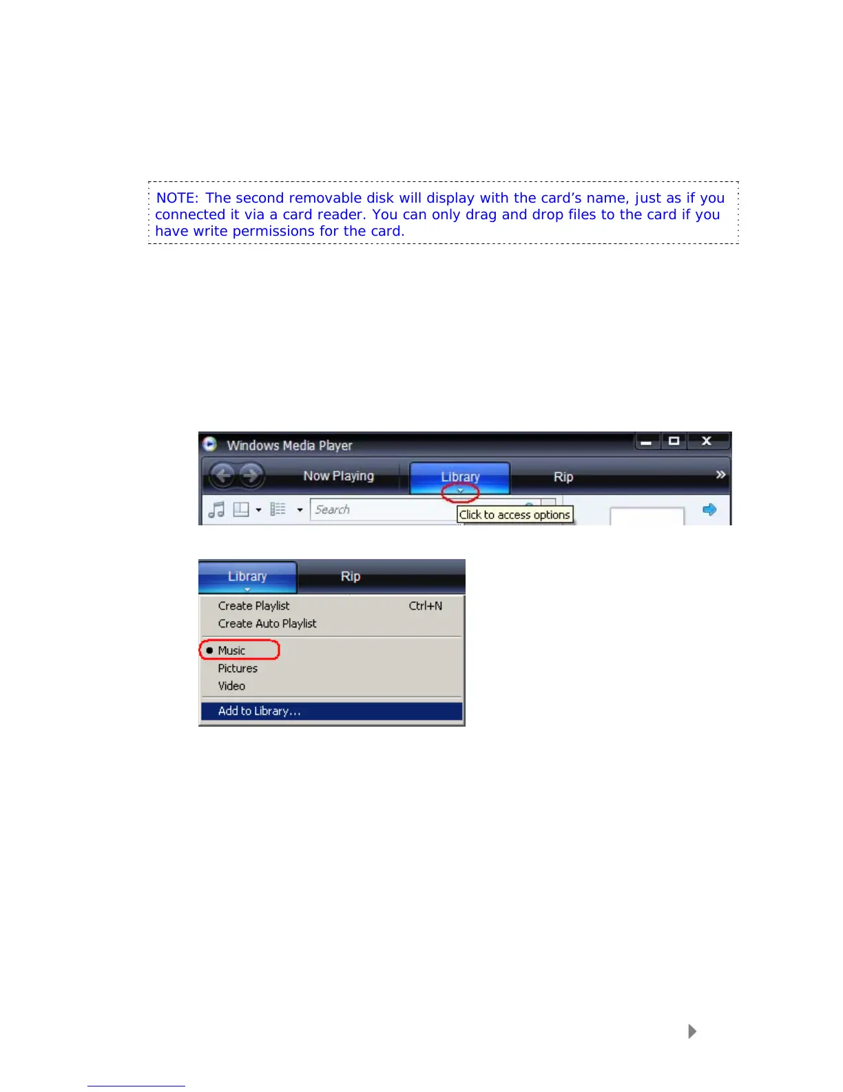 NOTE: The second removable disk will display with the card’s name, just as if you