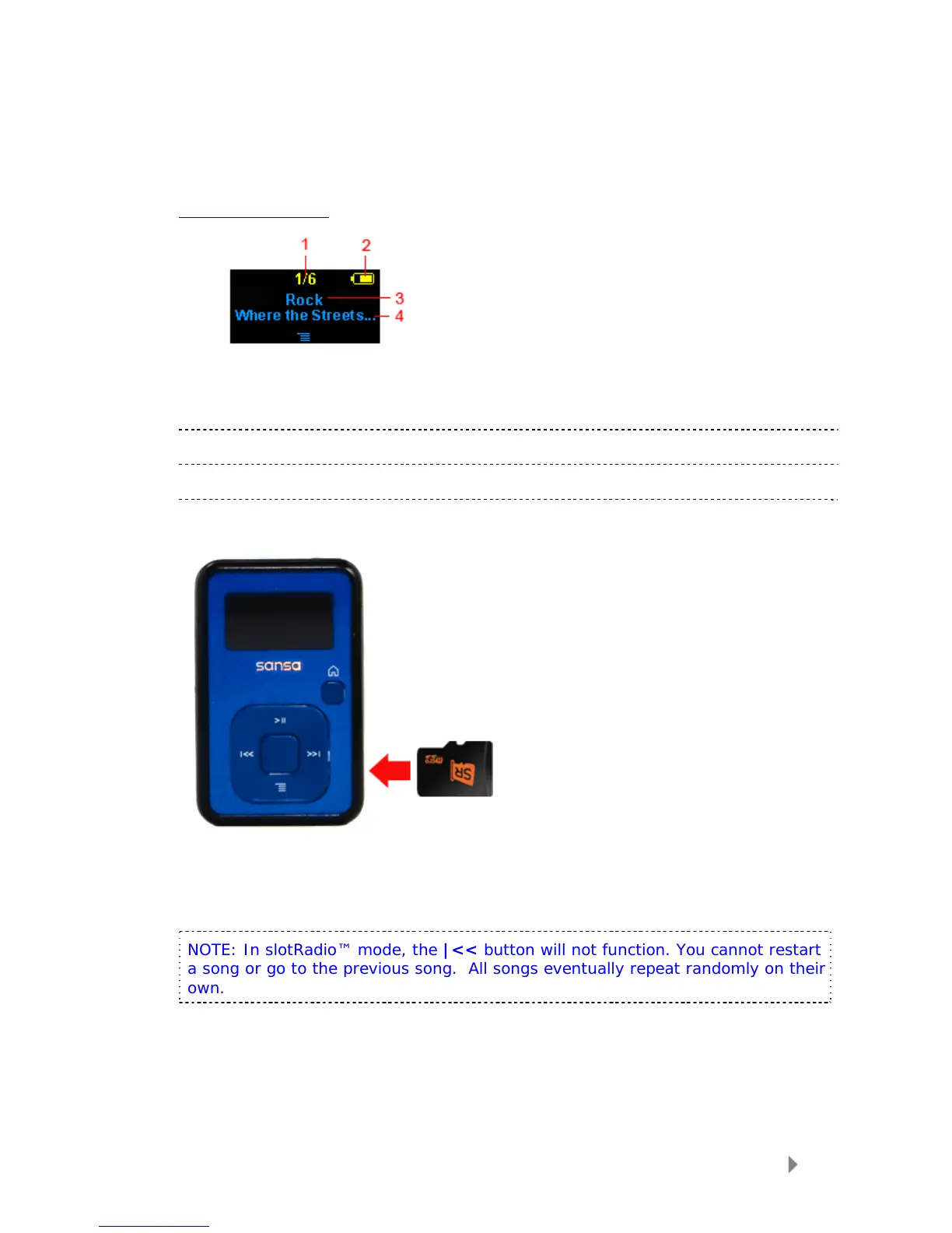 NOTE: In slotRadio™ mode, the |<< button will not function. You cannot restart