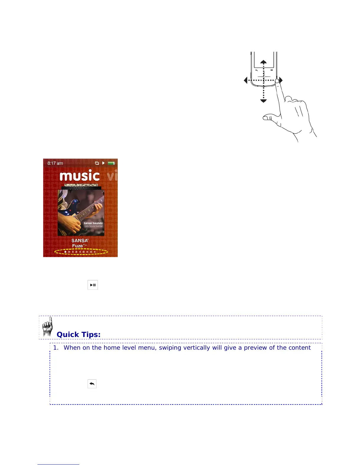 1.  When on the home level menu, swiping vertically will give a preview of the content
