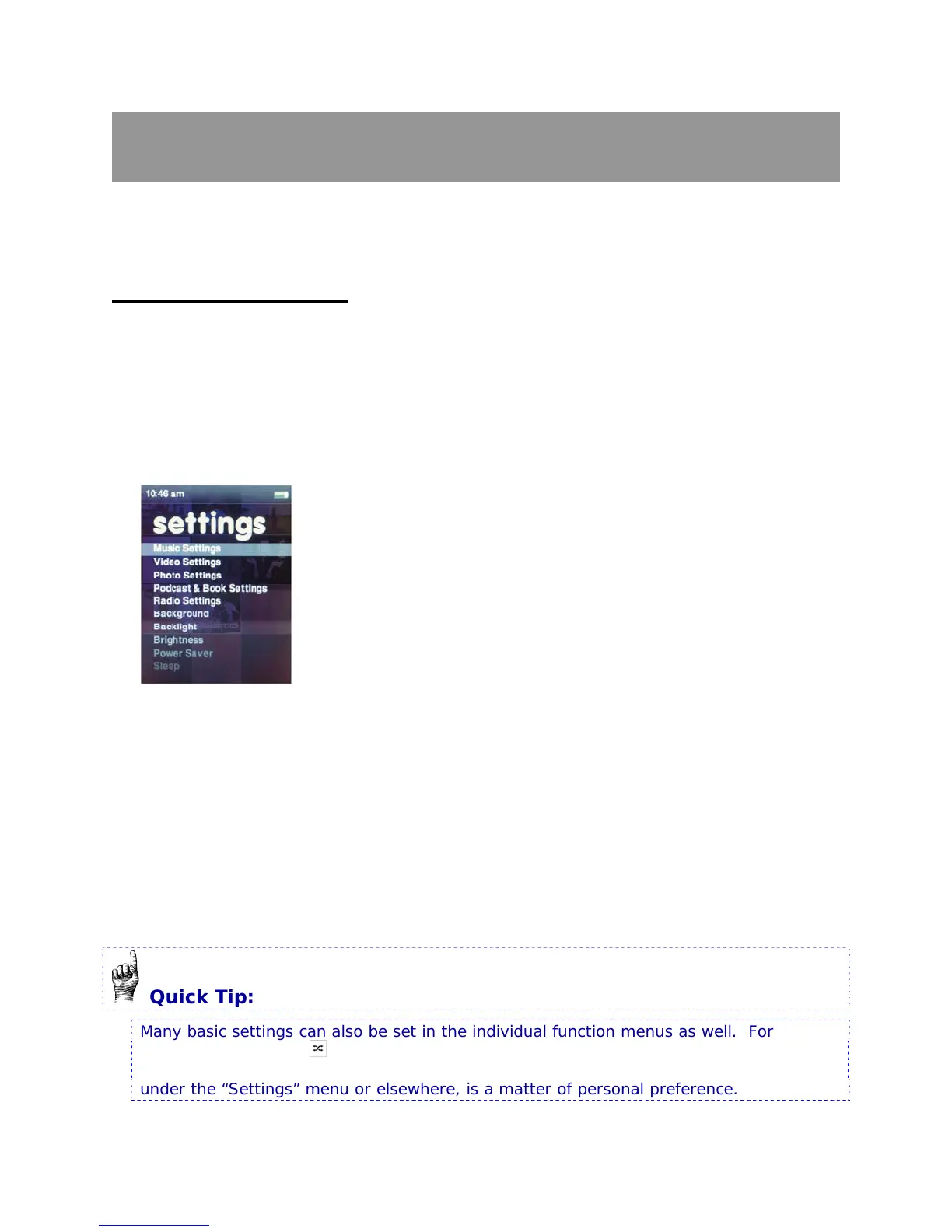 Your Sansa Fuze+ player comes with a rich Settings menu for customizing your device to