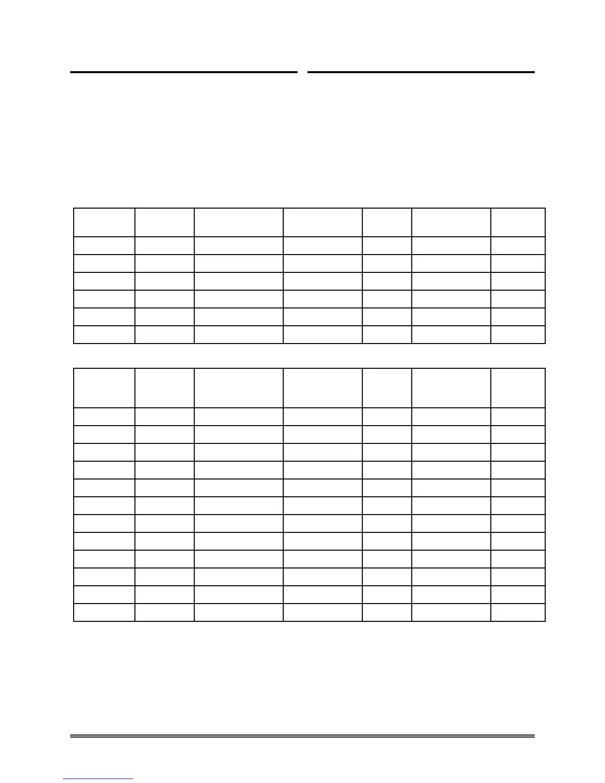 tables below show the capacity specifications of