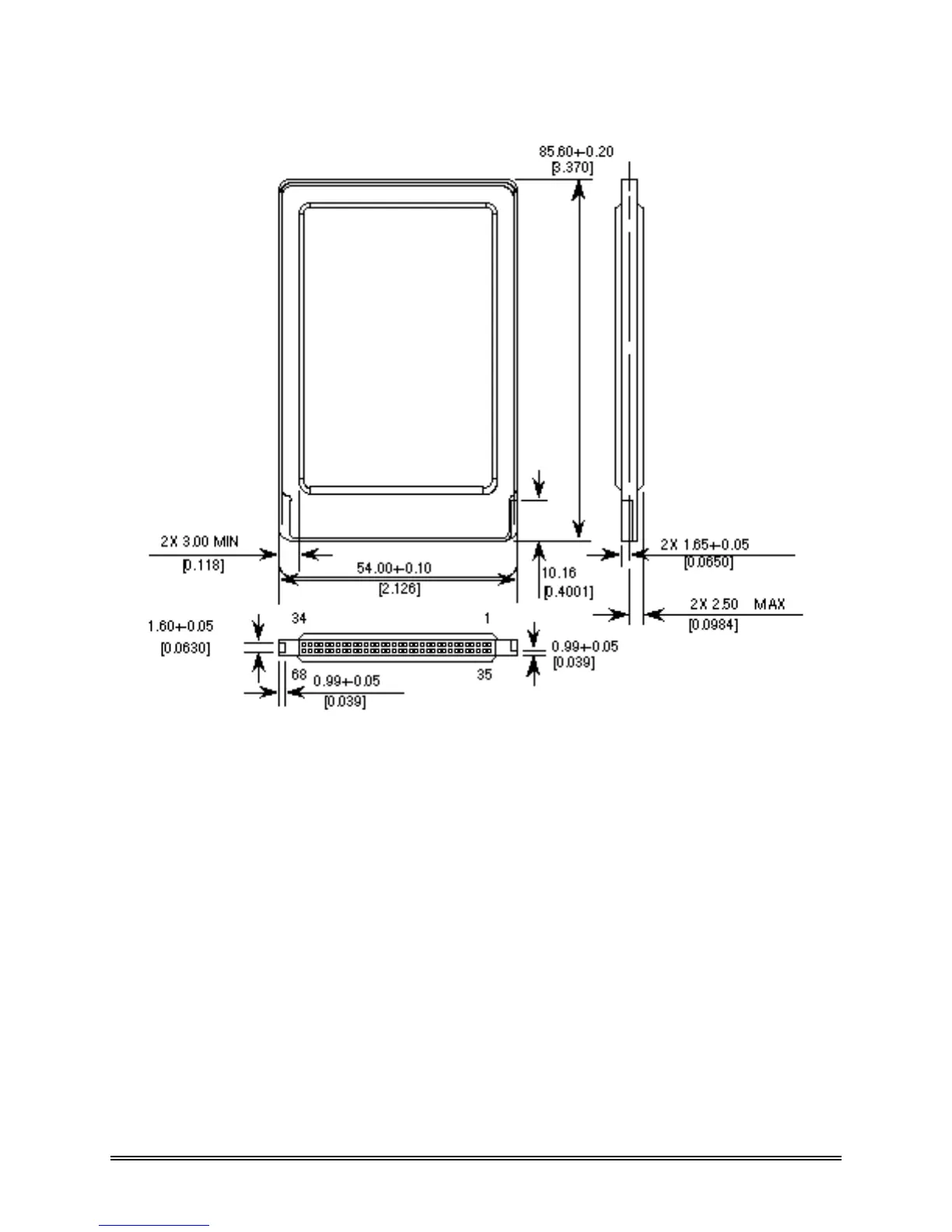 Figure 2-1 SDP3B Type II FlashDisk Dimensions