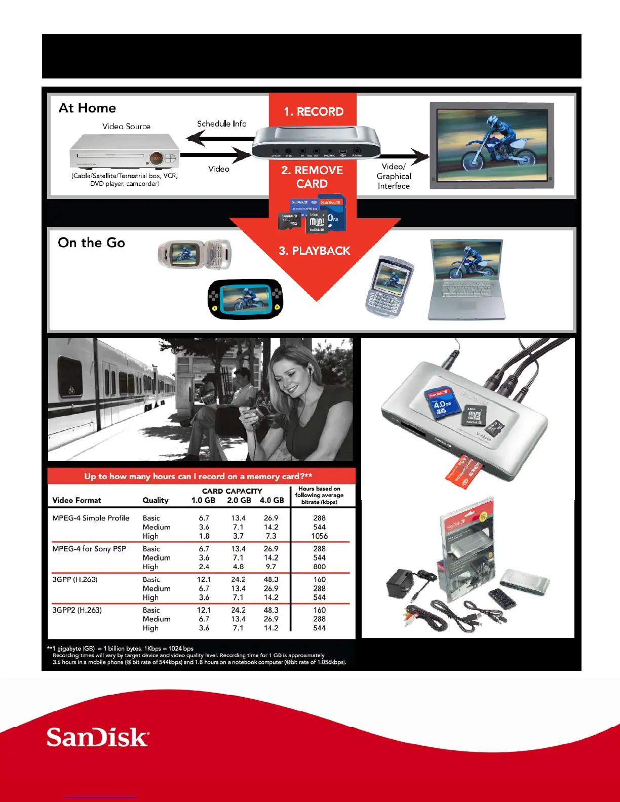 SanDisk V-Mate - RECORDING PROCESS; 1. RECORD; 2. REMOVE CARD; 3. PLAYBACK