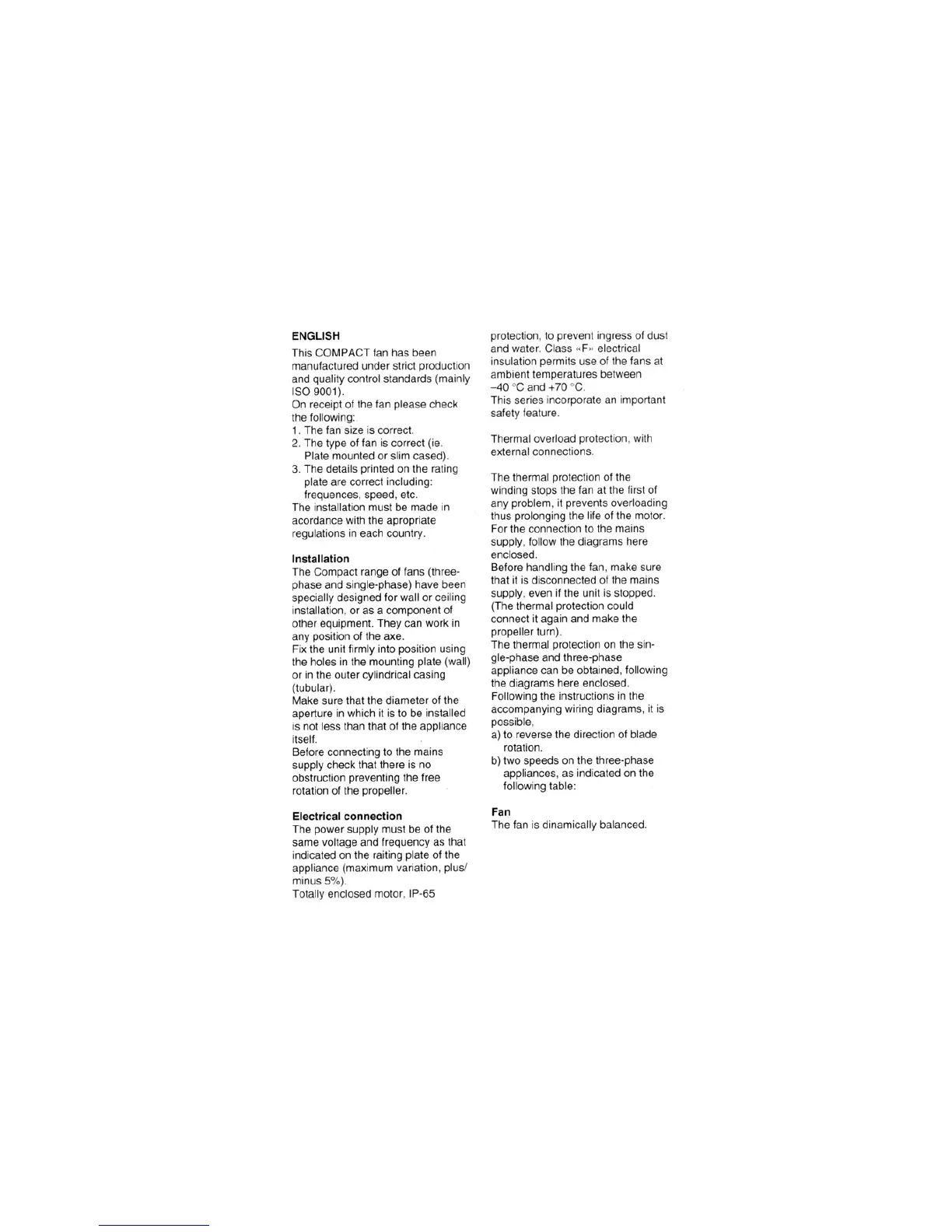 S&P Compact Sp Series - Installation; Electrical Connection; Fan; General Information