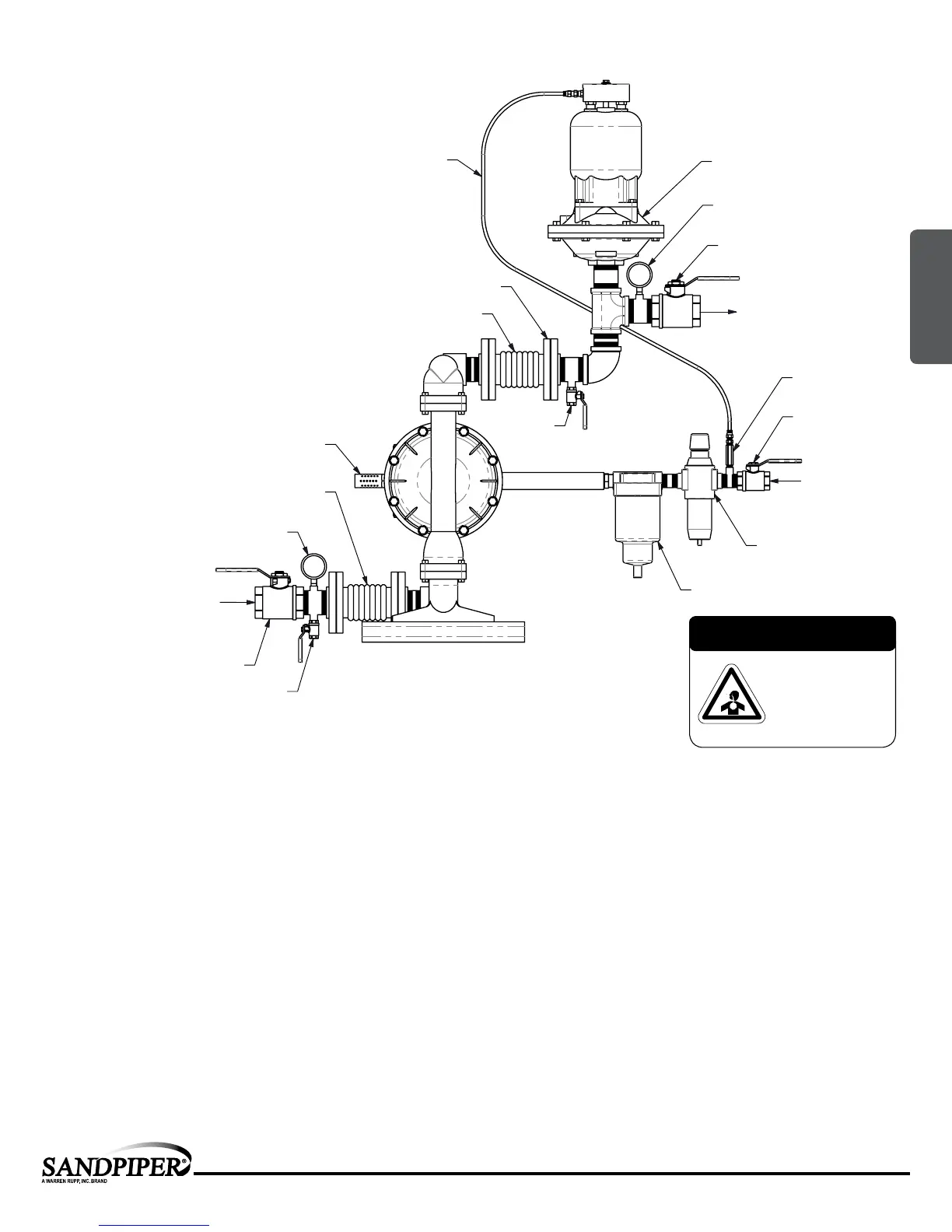 Connect the pump air inlet to an air supply with sufcient capacity and pressure to achieve desired performance. A pressure regulating valve should be installed to