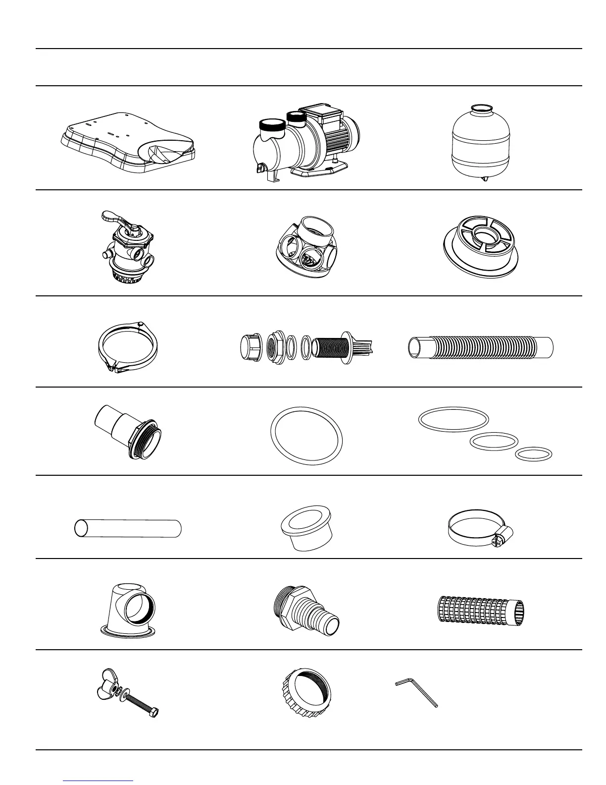 Clamp Ring Assembly (1) Drain Valve Assembly (1) Filter Pump Hose (1)