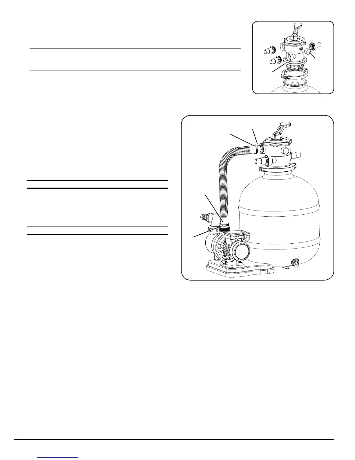filter intake port. Secure with the provided hose clamps.