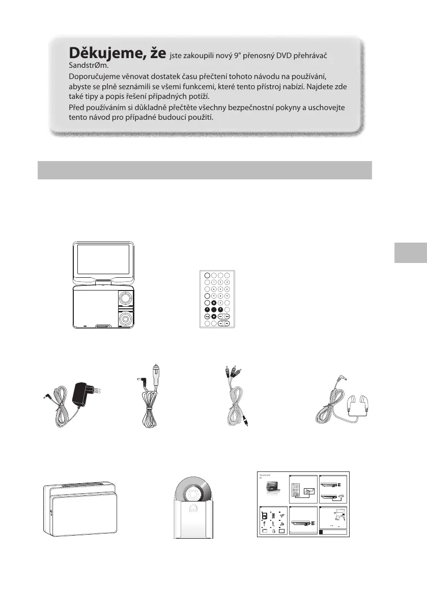 Děkujeme, že jste zakoupili nový 9" přenosný DVD přehrávač