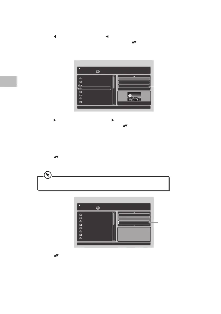 öppna den vänstra skärmen i Programvy. Använd knapparna på enheten eller på