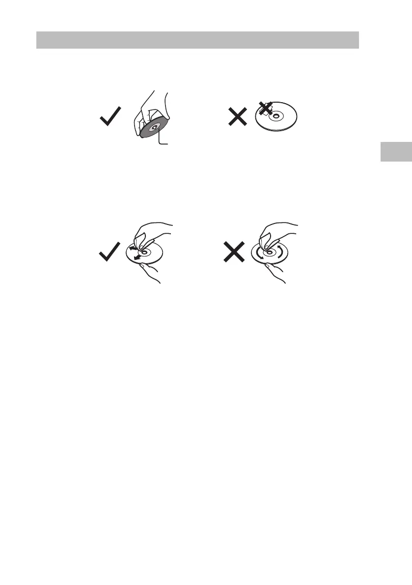 • Fingeravtryck och damm på skivorna kan förorsaka bild och ljudstörning. Torka skivorna