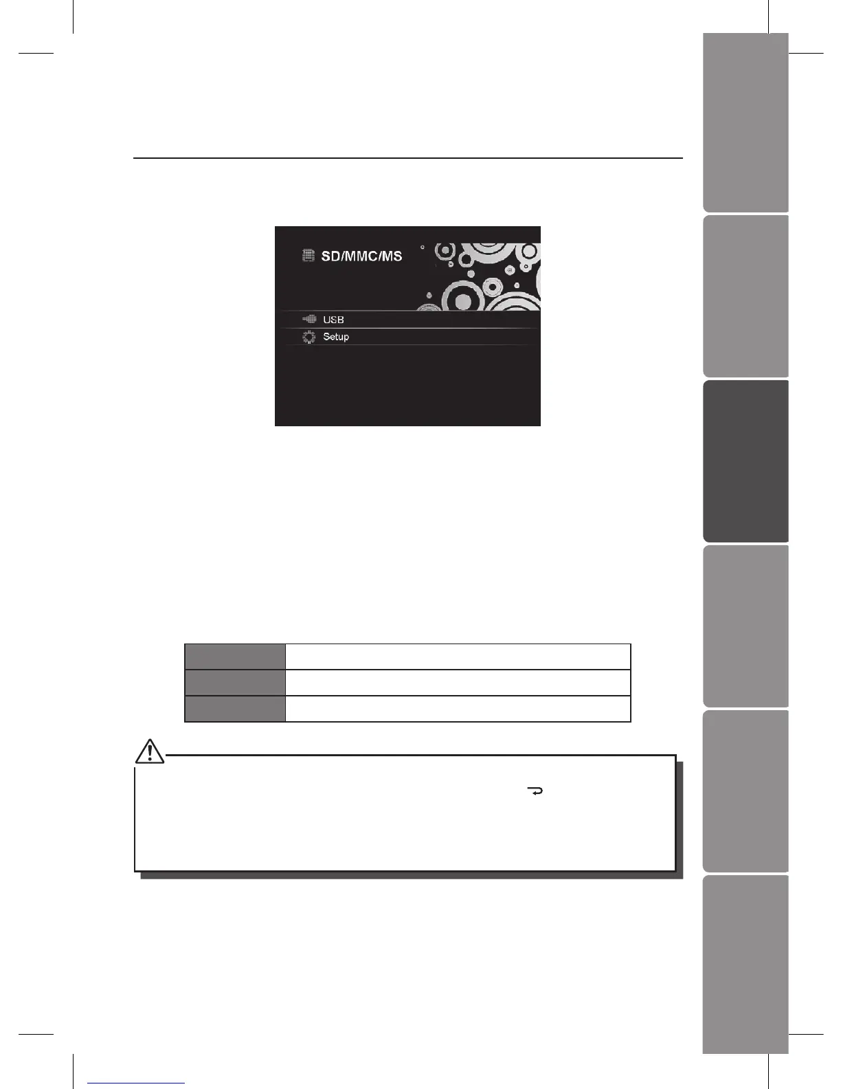•In the main menu, if you insert a SD / MMC / MS card or a USB device, the frame will start