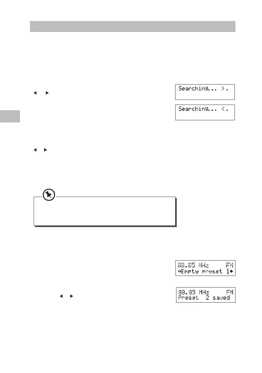 Voit myös etsiä FM-radiolähetyksiä manuaalisesti. Etsi haluamasi taajuus painamalla