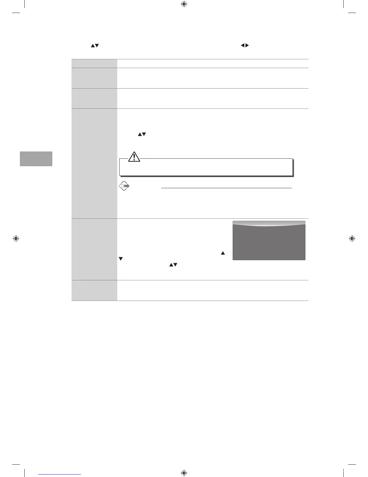 Off Time Allows you to set the off time that will automatically switch off the TV. Cycle through and