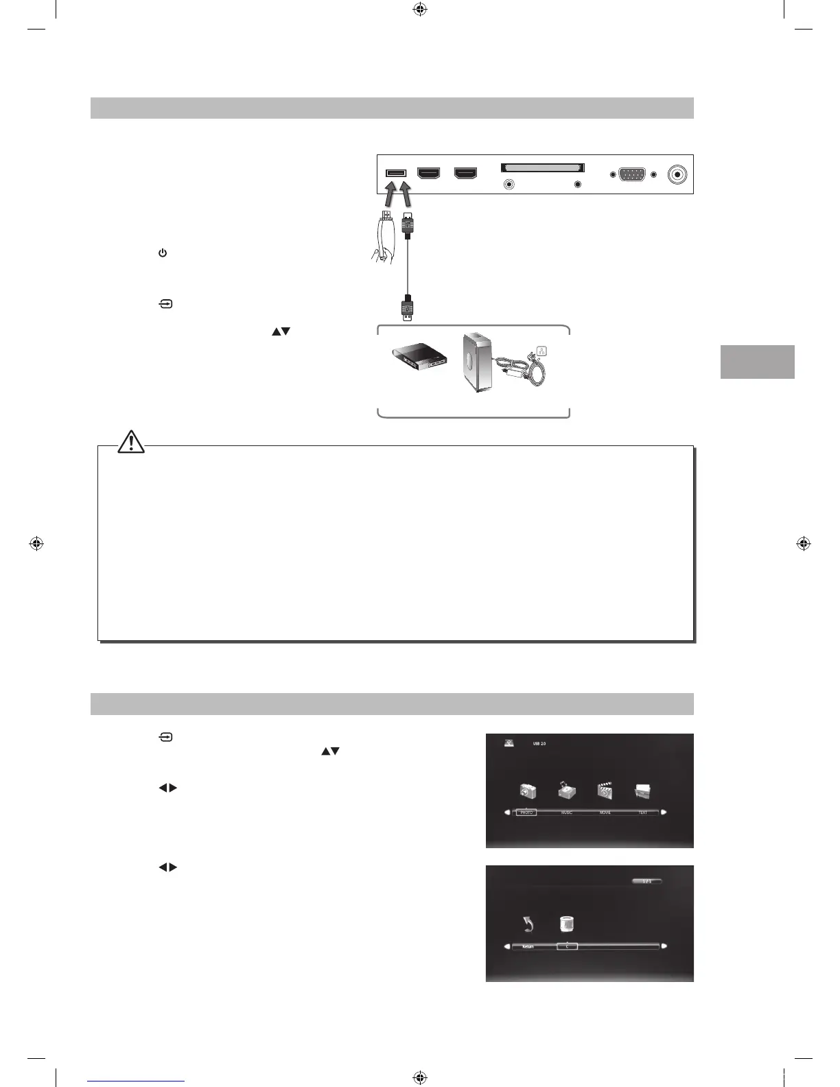 1. Switch off the TV before connecting any USB